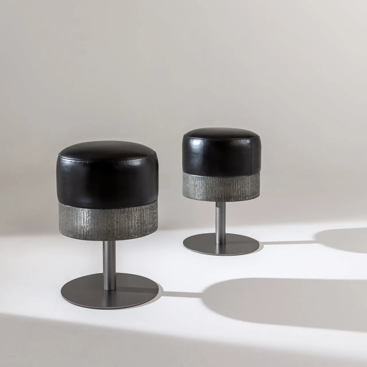 Questo sofisticato pouf girevole unisce l’elegante pelle nera a una base in metallo liquido di ispirazione industriale, creando un’estetica raffinata e al tempo stesso tagliente. La seduta lucida offre una sensazione di lusso, mentre la struttura cilindrica garantisce durata e stabilità. Progettato per essere versatile, può essere utilizzato come elegante seduta aggiuntiva o come accento accattivante. Per ulteriori dettagli, contattare il Concierge.