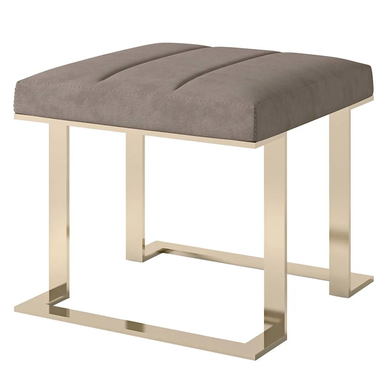 Questo sgabello imbottito presenta una base in metallo galvanico dorato che esalta il rivestimento in econubuck grigio. La morbida imbottitura aumenta il comfort e lo rende un’aggiunta perfetta a qualsiasi ambiente contemporaneo. Chiedete al Concierge le opzioni di personalizzazione.