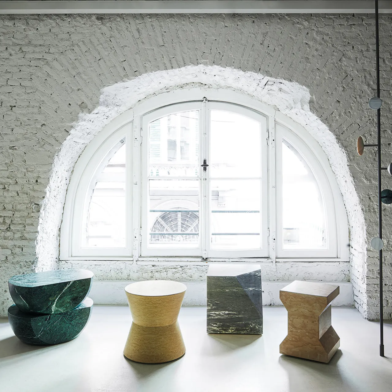 In un affascinante marmo giallo, lo sgabello Ikona è stato progettato da Elisa Ossino per essere un pezzo unico e multifunzionale. Utilizzabile in casa o in giardino, il pezzo può essere usato come tavolino o sgabello ed è dotato di piccole ruote per aiutarvi a spostarlo in nuovi luoghi. Il pezzo è disponibile anche in Cipollino, Rosa Perlino e Verde Guatemala.