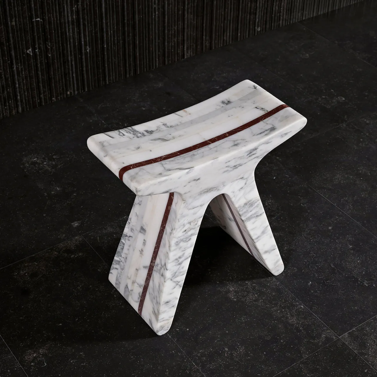 Pigreco è uno sgabello in marmo caratterizzato dalla sua forma primitiva edelementale e dal design senza tempo. Realizzato con lastre di marmo di spessore e colore variabili, riutilizza materiali scartati da altri progetti, creando una combinazione armoniosa di toni e dimensioni distinti. Leggero e versatile, funziona come uno sgabello, supporto o elemento scultoreo, adatto a più spazi abitativi, dal seating in bagno a ulteriore seating in soggiorno, progettato per facilitare il trasporto.