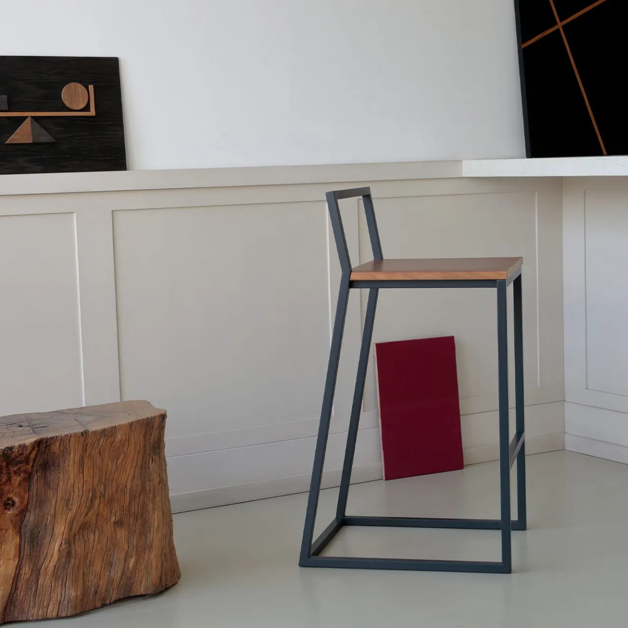 Un’ode al rigore minimalista, questo sgabello troverà una collocazione ideale in una cucina contemporanea o sul bancone di un bar. Il puro stile industriale distillato dalla struttura in metallo scolpito e rifinito in nero è controbilanciato dal fascino organico della seduta quadrata, realizzata in legno e proposta in una versione che ne mette in evidenza le venature naturali. Perfetto da abbinare alla Mia Chair.