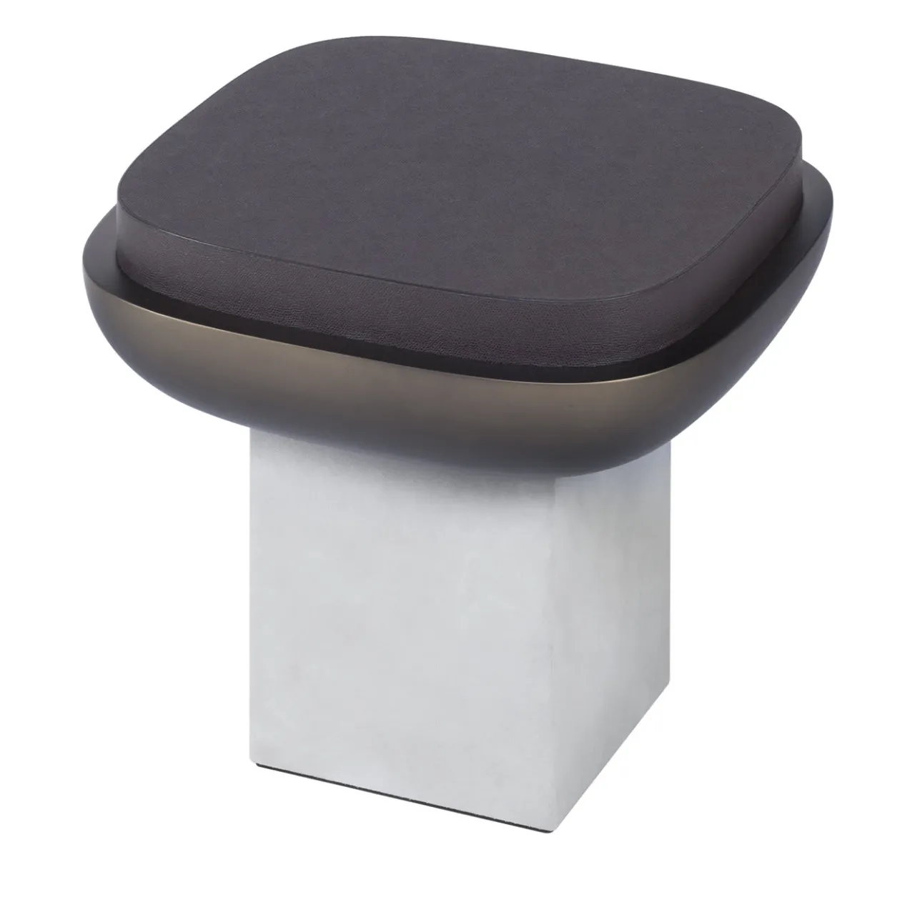 La fusione di materiali duri e lisci in un design che ricorda sia l’architettura futuristica del Parlamento del Brasile di Oscar Niemeyer sia le curve sinuose dell’architettura orientale, rende questo sgabello un pezzo speciale di arredamento funzionale, grazie alle sue linee pulite e alla palette di colori essenziali. La seduta in legno laccato scuro poggia su una base scultorea composta da una gamba a colonna rivestita in pelle scamosciata color avorio e da una ciotola in legno laccato color bronzo che conferiscono un’eleganza minimalista a questo esclusivo design di Stéphane Parmentier. La pelle è disponibile anche in nappa e vitello stampato.