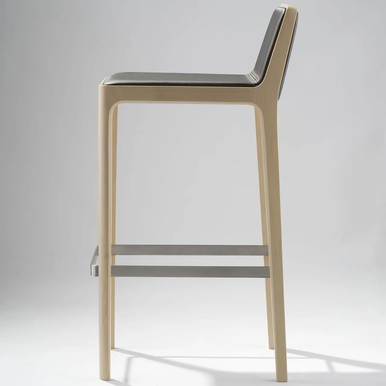 Tip Tap 383 è uno sgabello con seduta e schienale imbottiti e rivestiti in pelle. La struttura è in faggio e tutti gli elementi in legno sono collegati tra loro. La struttura è priva di accessori angolari. Ha un poggiapiedi in metallo e la pelle nella foto è di Cat C, Magnum Tex. Lo sgabello è disponibile anche rivestito in tessuto, per maggiori informazioni rivolgersi al concierge.