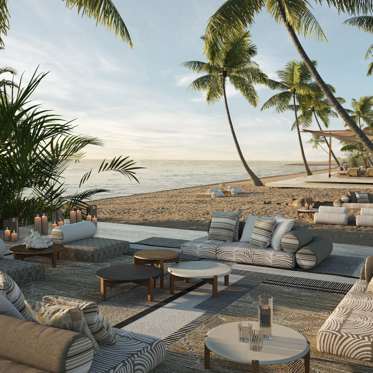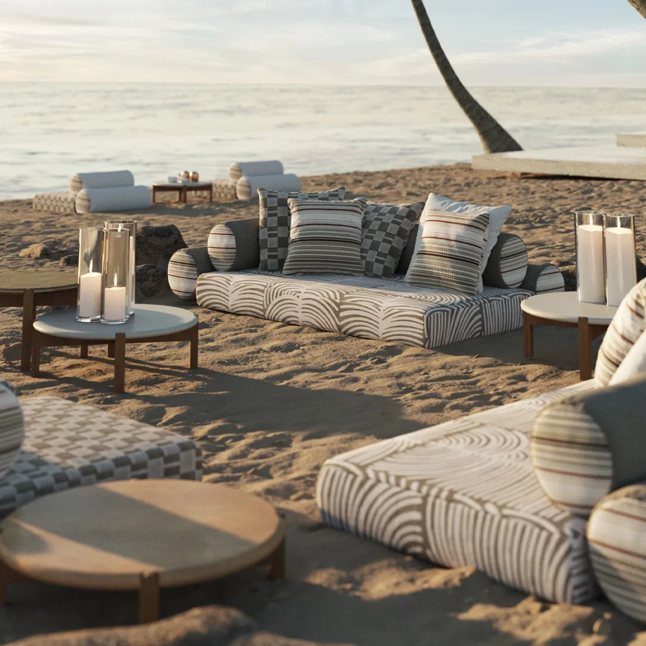 Shams (Sole in arabo) è un tavolino da esterno dalla forma essenziale e dall’aspetto solido che richiama uno stile di vita nomade. Le gambe in legno di iroko sostengono un piano rotondo in compensato marino di Okumè dall’effetto tattile e materico. La superficie è realizzata con polimeri a base d’acqua, olio di girasole, inerti naturali e materiali di scarto recuperati, applicati a mano da artigiani specializzati, che creano ogni giorno un prodotto unico. Il prezzo include la copertura protettiva.