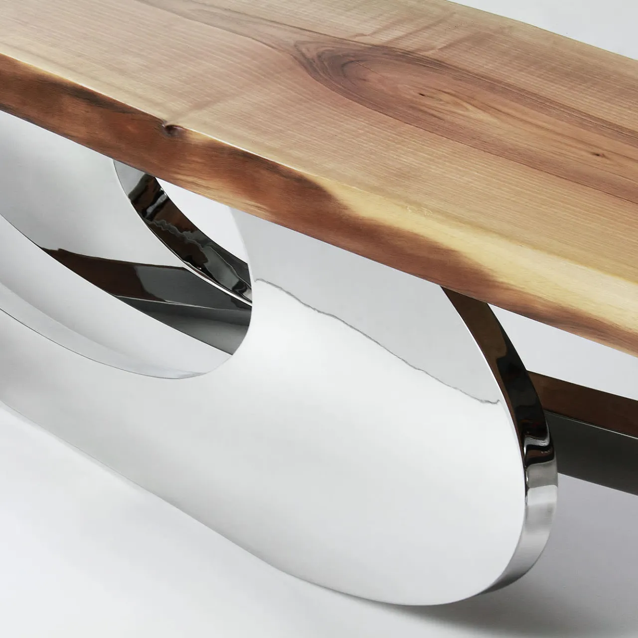 Il banco Sitz! ha una struttura in acciaio inox AISI 316, saldata e lucidata a specchio a mano. Il piano della panca è in massello di noce europeo levigato a mano e trattato con cera d’api naturale. Ogni panca è firmata a mano, numerata dagli artisti (incisa) e realizzata al 100% a mano in Italia. Edizione limitata a 15 esemplari. Le opere di Barberini & Gunnell sono regolarmente esposte in fiere d’arte internazionali.
