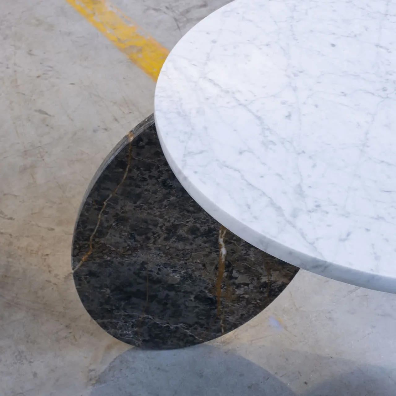 Questo tavolino d’effetto combina una silhouette minimalista di grande impatto visivo con un design classico. L’elegante piano rotondo è realizzato in marmo di Carrara con una struttura in marmo Port Laurent che completa il design.