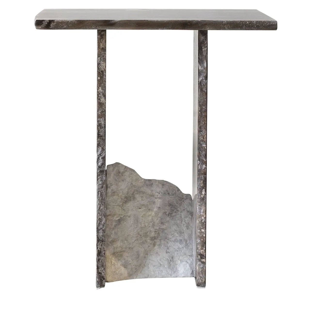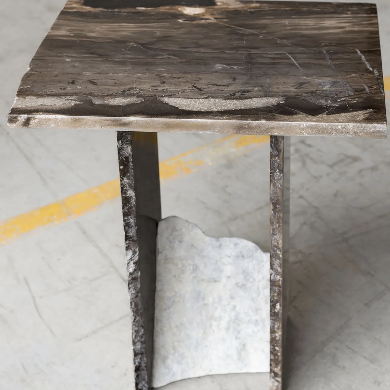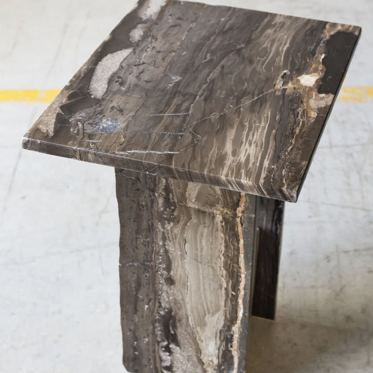 Questo tavolino fa parte di un set di due pezzi. Combina linee eleganti e pietra di marmo scultorea, elegantemente accostata ai ritagli di marmo del piano e dei fianchi. Una scultura funzionale che gioca con la geometria, l’equilibrio e la natura per elevare il look di qualsiasi spazio abitativo contemporaneo. La struttura in marmo è composta da marmo frappuccino, mentre la base è di colore grigio invisibile.