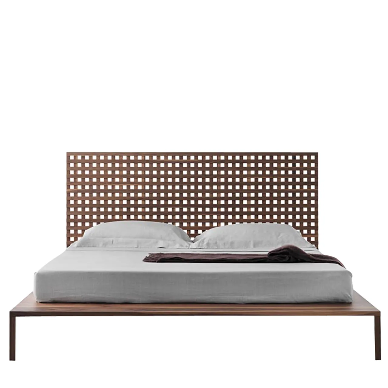 Interamente realizzato in massello di noce canaletto, questo letto di Matteo Thun e Antonio Rodriguez vanta un design unico e accattivante. La testata è composta da doghe ortogonali che danno forma a un raffinato e caratteristico traforo. Esempio di sapiente artigianalità in un design pulito ed essenziale, questo pezzo versatile eleverà il look di ogni camera da letto. Letto composto da un giroletto e da una testata indipendente da fissare alla parete. Doghe, materasso e cuscini non sono inclusi.