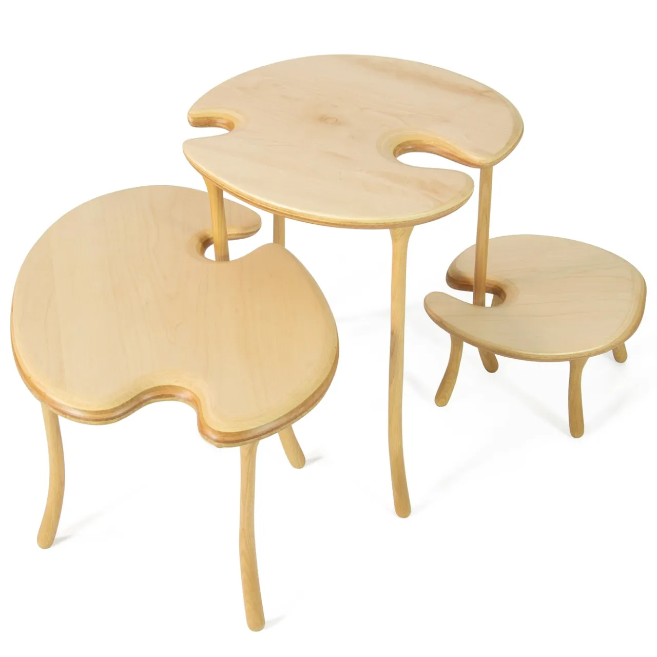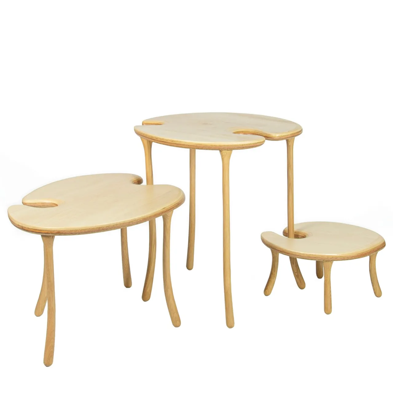 Questi splendidi tavolini modulari a 3 pezzi, di dimensioni diverse, sono interamente realizzati in legni pregiati, con una finitura naturale che mette in risalto gli anelli di pregio. Possono essere abbinati ad altri elementi della Serie Tavo dei designer Giuliano-Fukuda; per maggiori dettagli, consultare il catalogo Artemest. Dimensioni: Tavo 1: L.37xP.34xH.17,5 cm; Tavo 3: L.58,4xP.42,2xH.32,5 cm; Tavo 5: L.46xP.45,5xH.50 cm.