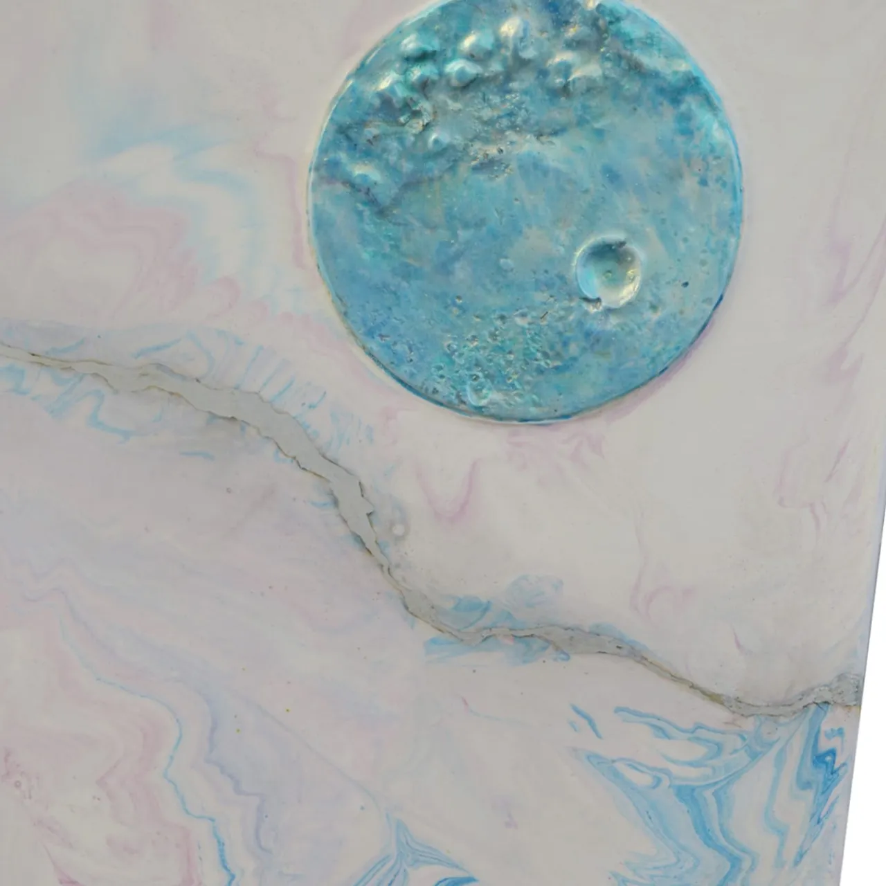 Simpatico tavolino progettato e realizzato da Cupioli Lodovico, artista italiano di Rimini. Il colore diventa il grande protagonista e l’artigianalità esalta e distingue le soluzioni d’arredo made in Italy. L’artista ha deciso di inserire una lavorazione materica nella rappresentazione della luna con sfumature di colori metallici, tutte le venature e le vibrazioni dei toni sono realizzate a mano di volta in volta e ogni singolo pezzo sarà diverso e unico e non più ripetibile.