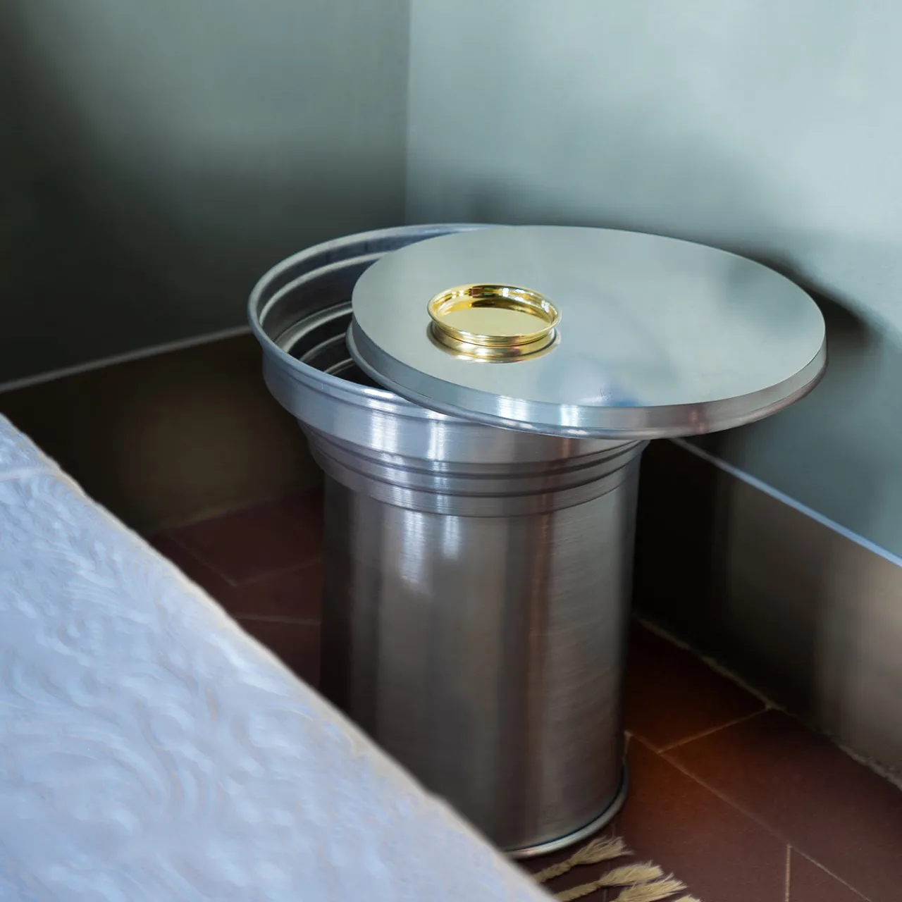 Tavolino scultoreo dal design minimalista e contemporaneo, ispirato alla forma del capitello. La finitura in alluminio spazzolato conferisce una superficie liscia e satinata, perfetta per ambienti moderni, industriali o minimalisti. Versatile nelle sue applicazioni, può fungere da supporto espositivo per oggetti decorativi, tavolo laterale nel soggiorno o elemento contenitivo in camera da letto, ideale sia per spazi residenziali che contract.