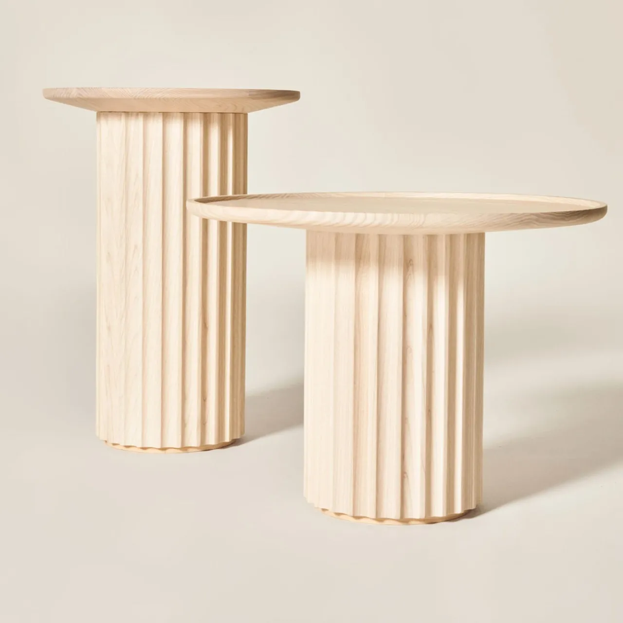 Il tavolino Capitello fa parte della Collezione 2023 in collaborazione con Cono Studio. L’artigianato di Dale Italia assume una nuova prospettiva e un nuovo linguaggio, creando un design contemporaneo ed elegante. Questi tavolini presentano forme elementari per un’eleganza essenziale. Il motivo lineare avvolge l’elemento visivo principale con un intrigante gioco di luci e ombre. Il legno di frassino bianco aggiunge un’ordinata qualità naturale, per un ambiente caldo e onirico.