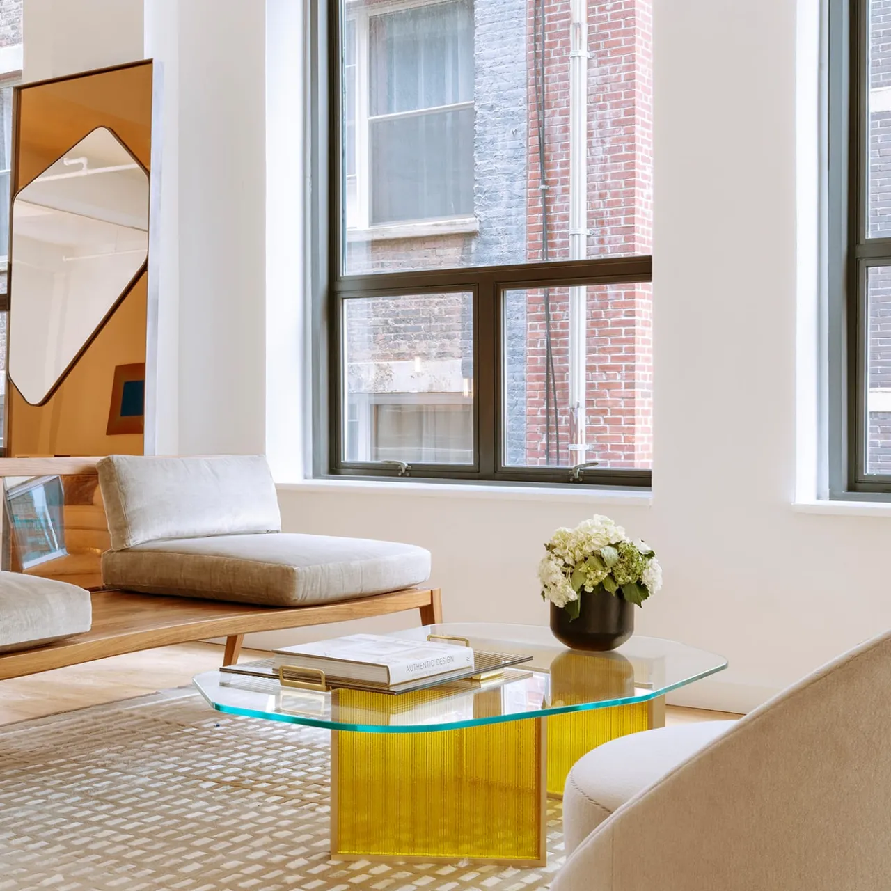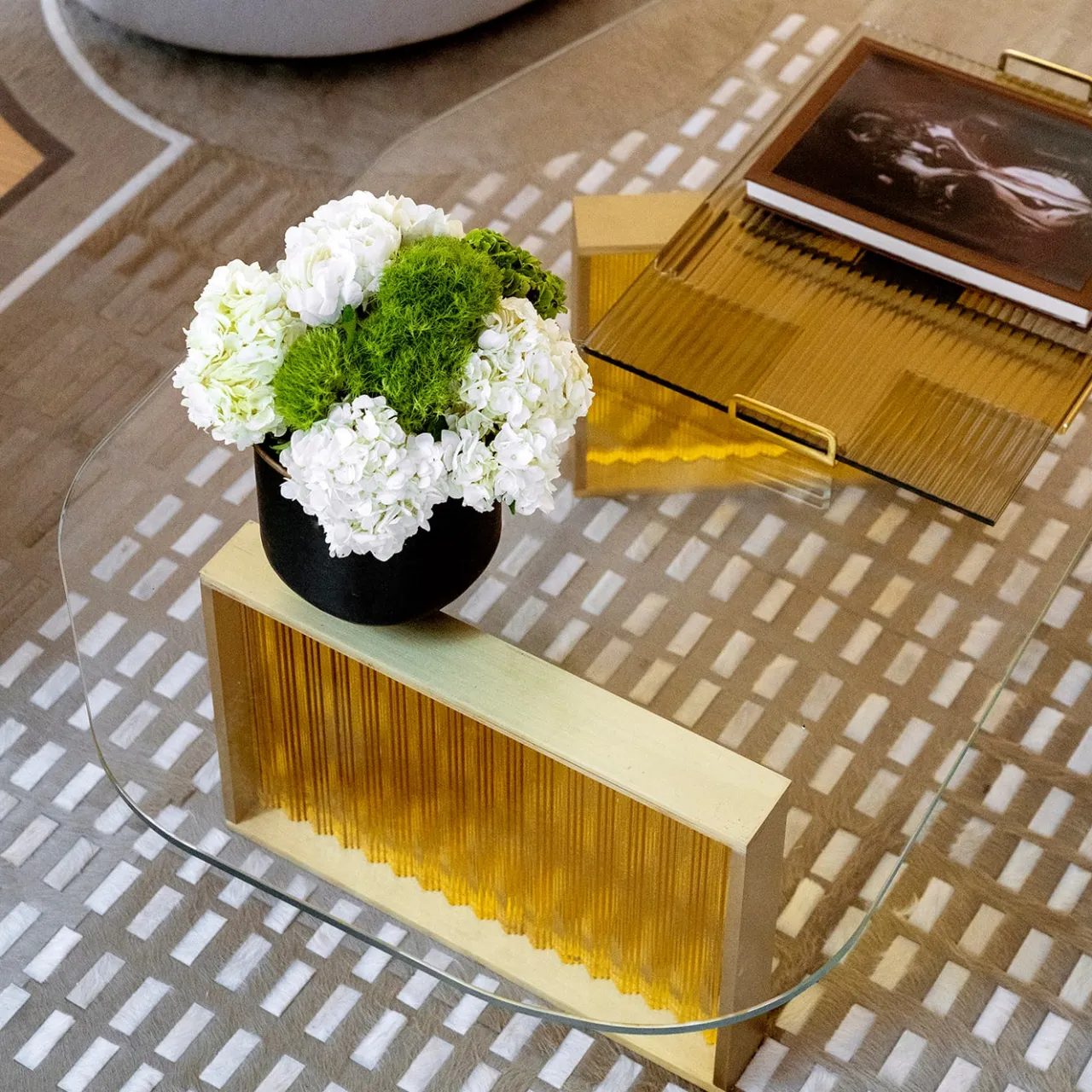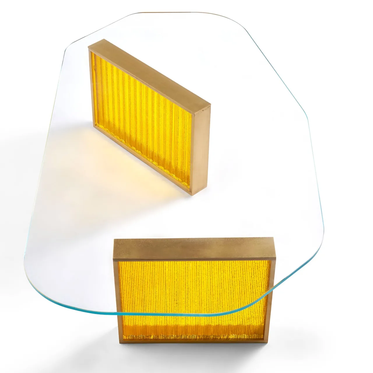 I tavoli Aurora esemplificano la passione di Lauren Rottet e Rottet Studio per la creazione di spazi luminosi e riflettenti che si modificano con il mutare della luce durante il giorno. La base in vetro fuso a coste è disponibile in vetro ambrato ed è sormontata da un piano in vetro asimmetrico. Il cambiamento della luce diurna influisce sulla percezione della saturazione del colore delle basi in vetro. La creazione di ambienti dinamici e mutevoli è una parte fondamentale della filosofia progettuale di Rottet.