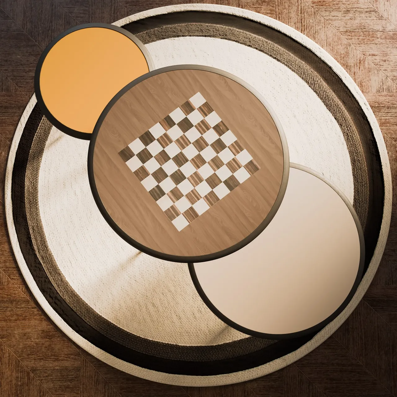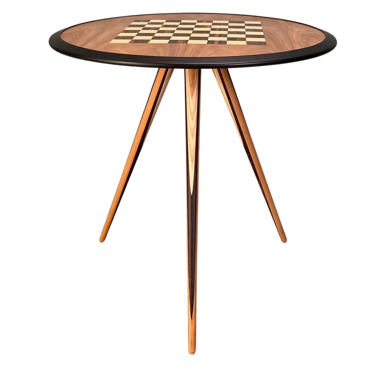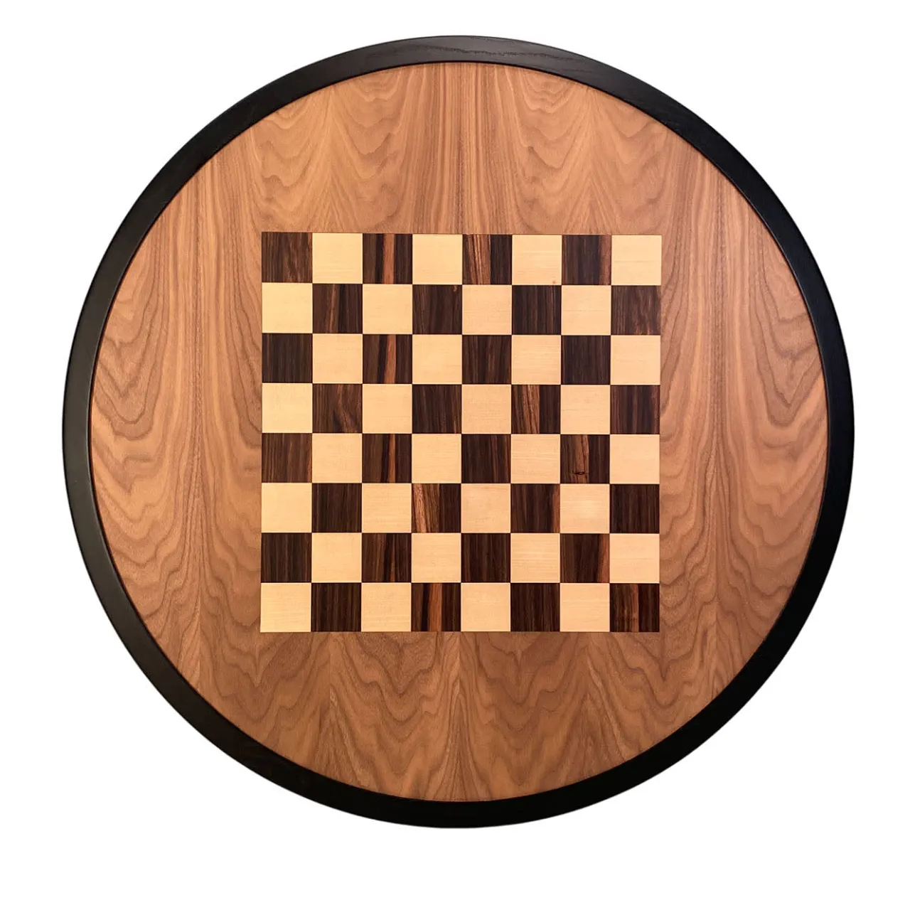 Impregnato della massima raffinatezza, questo stupendo tavolino è un’abile dimostrazione di artigianato tradizionale. Il suo piano rotondo è realizzato a mano in frassino laccato in tonalità ebano, arricchito da intarsi in noce, acero ed ebano Makassar che riproducono una scacchiera. Le gambe sono realizzate al tornio in ciliegio, acero e wengè. Per ulteriori dettagli, consultare il Concierge.