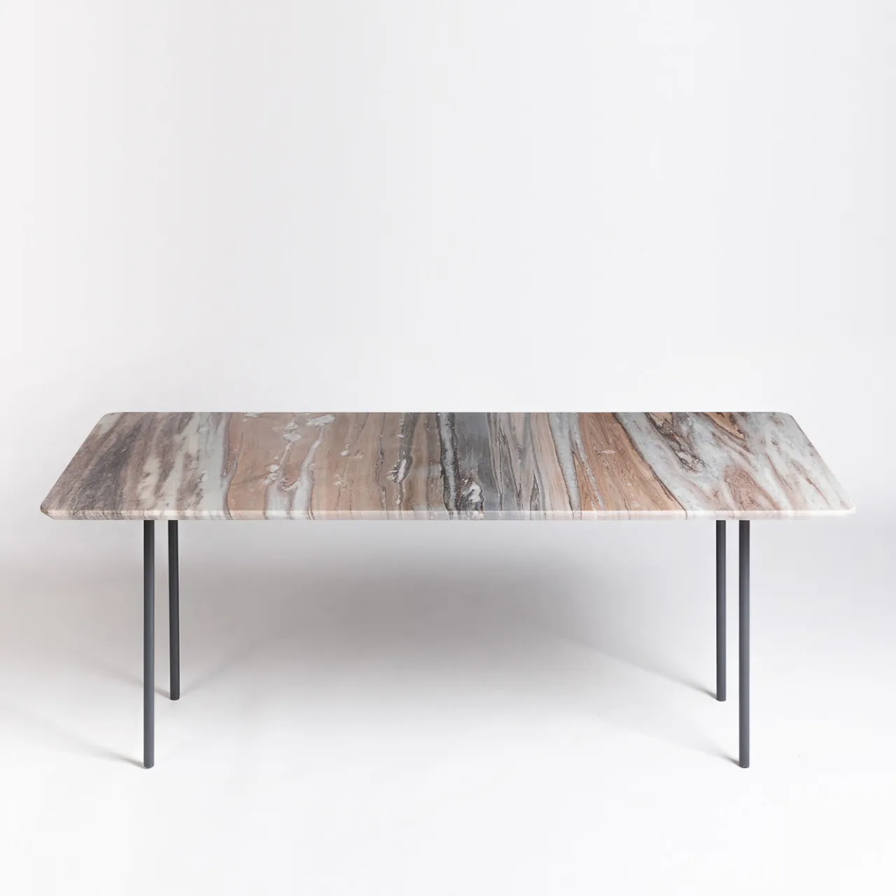 Questo magnifico tavolino è l’esempio perfetto delle caratteristiche ipnotiche e uniche della natura, incarnate dalle singolari sfumature che definiscono il suo piano in marmo Palissandro. Rettangolare con angoli e spigoli arrotondati, il grande piano poggia solidamente su una base in ferro laccato grigio composta da quattro gambe tubolari, disponibili anche in oro o nero. Il tipo di marmo è personalizzabile, si prega di chiedere al Concierge per le opzioni.