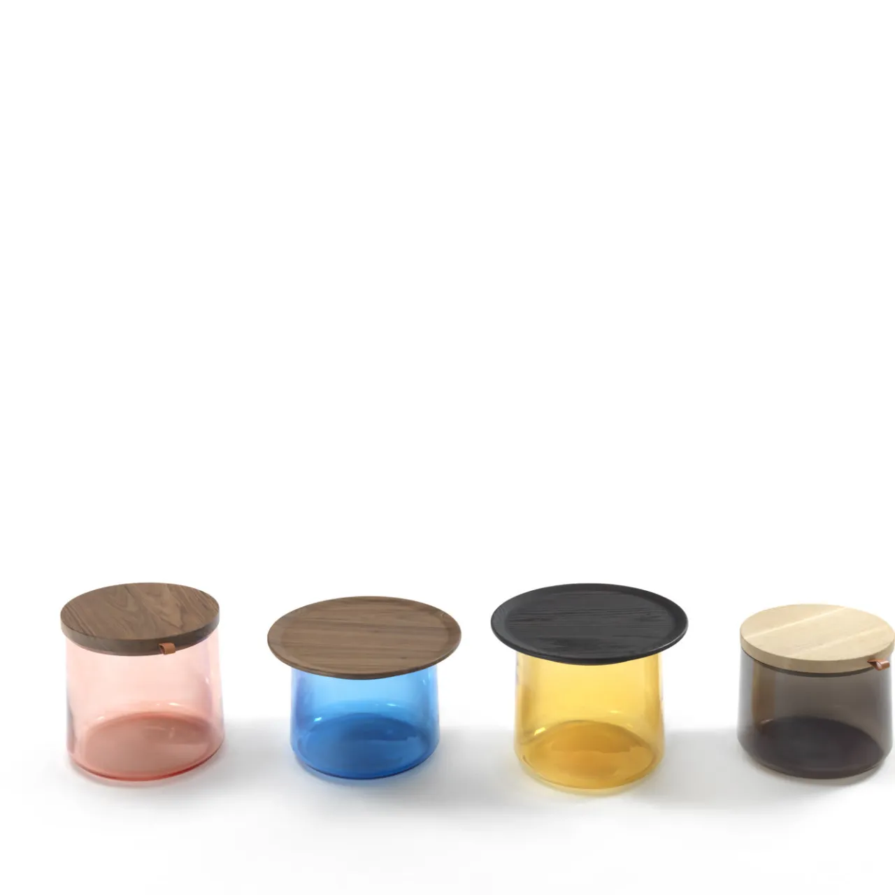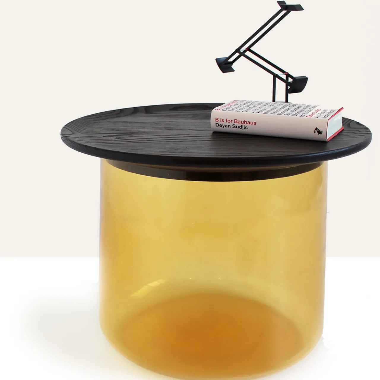 Questo tavolino di grande effetto è composto da un grande vaso inferiore in vetro colorato (che può fungere da contenitore o da ripostiglio) e da un piano in rovere massiccio tinto che può essere utilizzato anche come vassoio (disponibile anche in legno di noce “Canaletto” o in legno di rovere tinto grigio – il prezzo può variare in base alla finitura richiesta). Il vetro è disponibile nei colori ambra, fumé, azzurro e rosa.