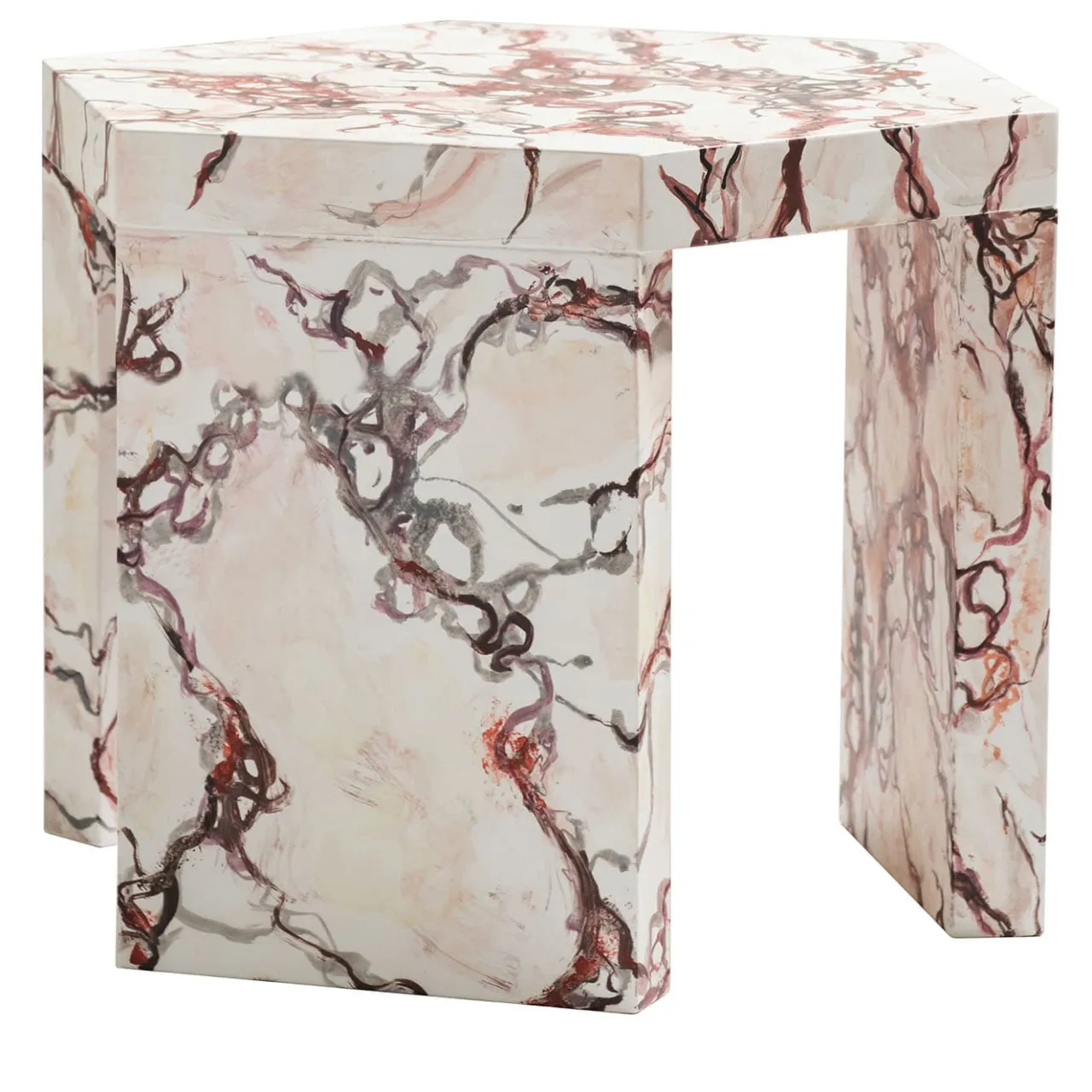 Ispirato al pregiato marmo italiano, questo tavolino da caffè è realizzato con cura attraverso la fusione di principi di design minimalista e antiche tradizioni artistiche. Con elementi compositi di 4 cm di spessore, questo tavolino modulare è solido e funzionale, con una struttura in legno rivestita di vernice catalizzata con solventi, una base in poliuretano e una finitura acrilica. La leggerezza e l’eleganza del tavolino, unite al suo design innovativo, si traducono in un pezzo d’arte di grande impatto.