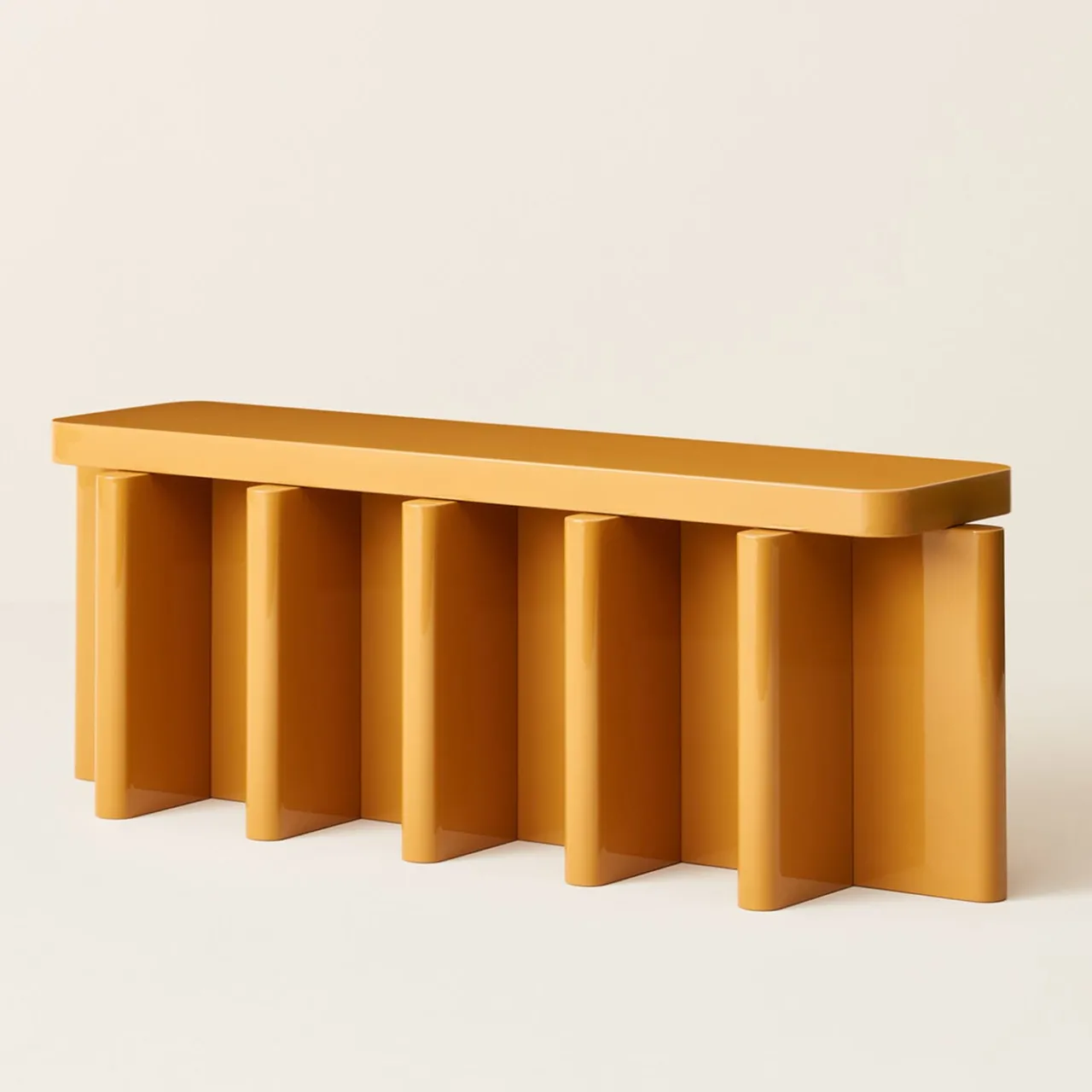 Essenziale e grafico, il tavolo ha una densa base scheletrica costituita da un elemento geometrico ripetuto che sostiene un piano orizzontale più piccolo. La nozione di oggetti impilati lo rende una sorta di altare con una rappresentazione totemica e primitiva. Design di Cara/Davide per Portego.
