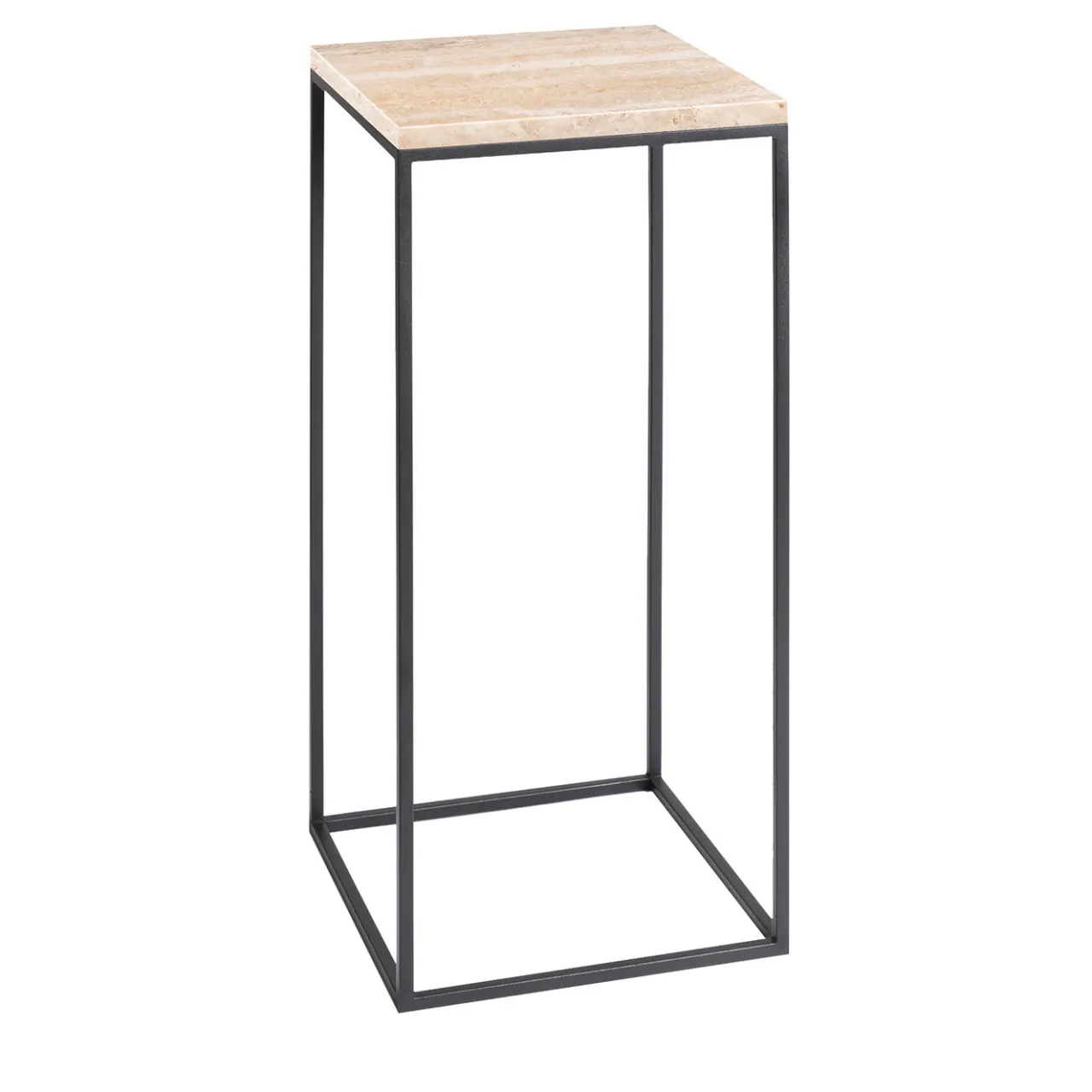 Testimonianza di un design minimalista, questo eccezionale tavolino impreziosisce senza sforzo un interno contemporaneo con le sue linee pulite ed essenziali. Realizzato in ferro laccato grigio, la base puramente geometrica sostiene elegantemente un piano quadrato in marmo travertino. Personalizzabile per tipo di marmo e finitura metallica, chiedere al Concierge per le opzioni.