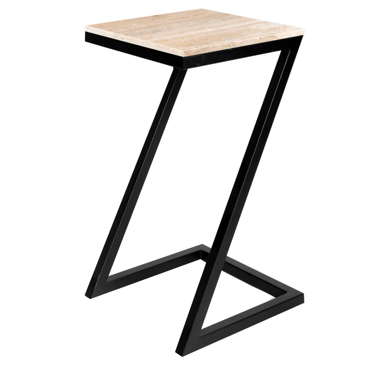 Questo eccezionale tavolino presenta una silhouette accattivante caratterizzata da un dinamico gioco di linee angolari. Realizzato in ferro laccato nero, la base sostiene un piano in marmo travertino rosa che aggiunge un contrasto elegante e senza tempo al design. Personalizzabile nella finitura del metallo e nel tipo di marmo, chiedere al Concierge per le opzioni.