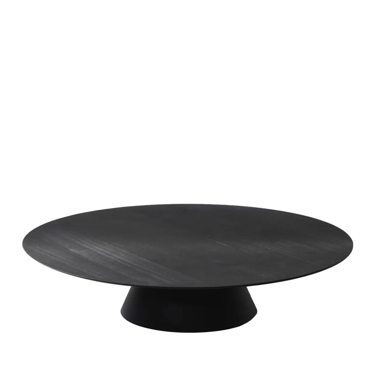 Questo elegante tavolino rotondo porta in casa un elemento di sottile minimalismo. Una base rotonda corta che si assottiglia verso la parte superiore sostiene il piano piatto rotondo con una sorprendente texture spazzolata sulla superficie. L’intero pezzo è realizzato in legno di larice verniciato con una lacca nera opaca. Questo tavolo aggiunge un tocco di semplice raffinatezza a qualsiasi ambiente. È ideale in un salotto come oggetto funzionale, ma è sufficientemente suggestivo da poter essere utilizzato per scopi decorativi, come l’esposizione di sculture o altri oggetti decorativi.