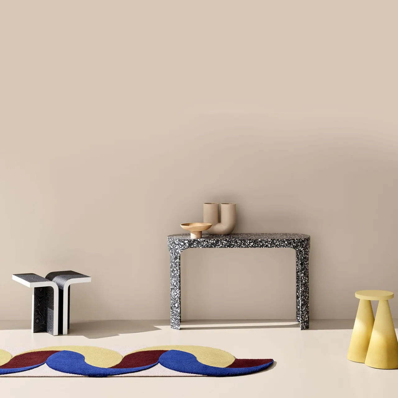 Come un’isola, una superficie circolare poggia su due massicce gambe a cono. I colori diventano più intensi scendendo verso la base. Il tavolo Isola è interamente realizzato in ceramica, utilizzando un forno ad alta temperatura per rendere il materiale più resistente. Design di Cara/Davide.