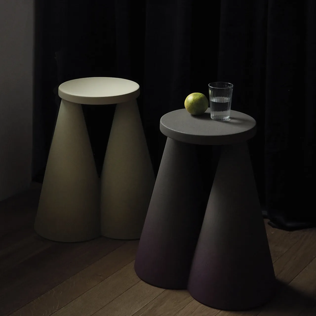 Disegnato da Cara/Davide, il tavolo Isola si riferisce figurativamente a un’isola (“isola” in italiano), ma è una metafora dell’isolamento sperimentato durante la pandemia di Covid-19, visto non solo come condizione negativa ma anche come luogo di rifugio emotivo e fisico. La forte silhouette geometrica è realizzata interamente in ceramica con due imponenti coni che formano la base e una piccola sommità rotonda. Adatto solo per uso interno, questo pezzo unico è rifinito in viola con sfumature verdi, con un effetto sfumato che esalta la sua suggestiva immagine scultorea. Colori personalizzati sono disponibili su richiesta.