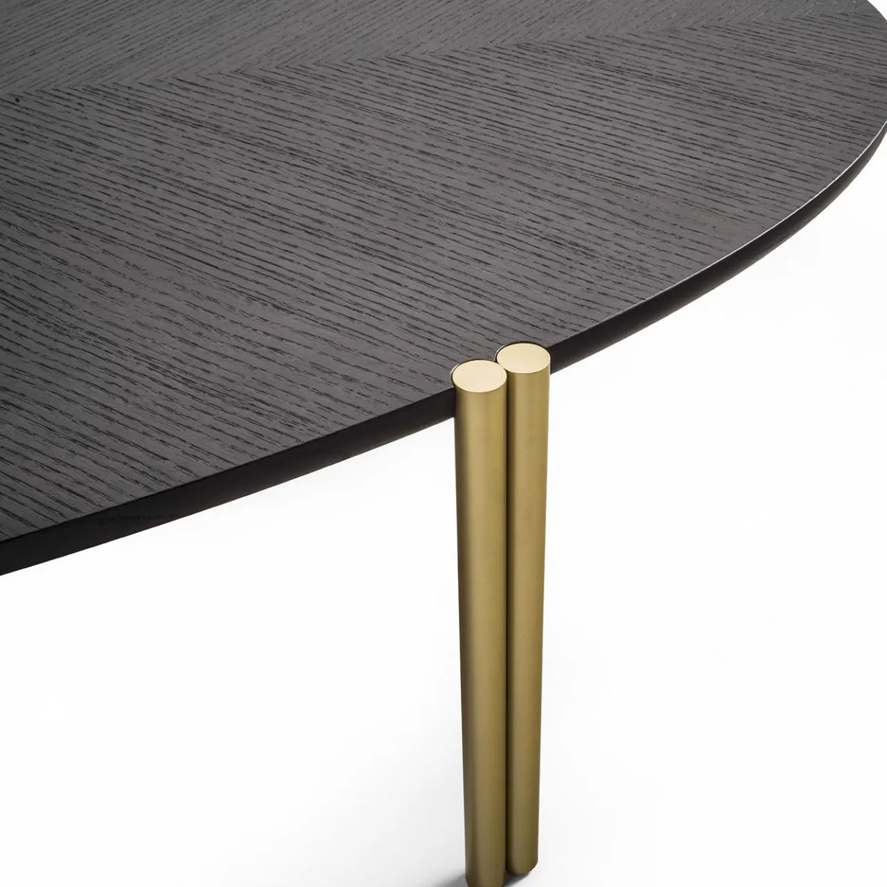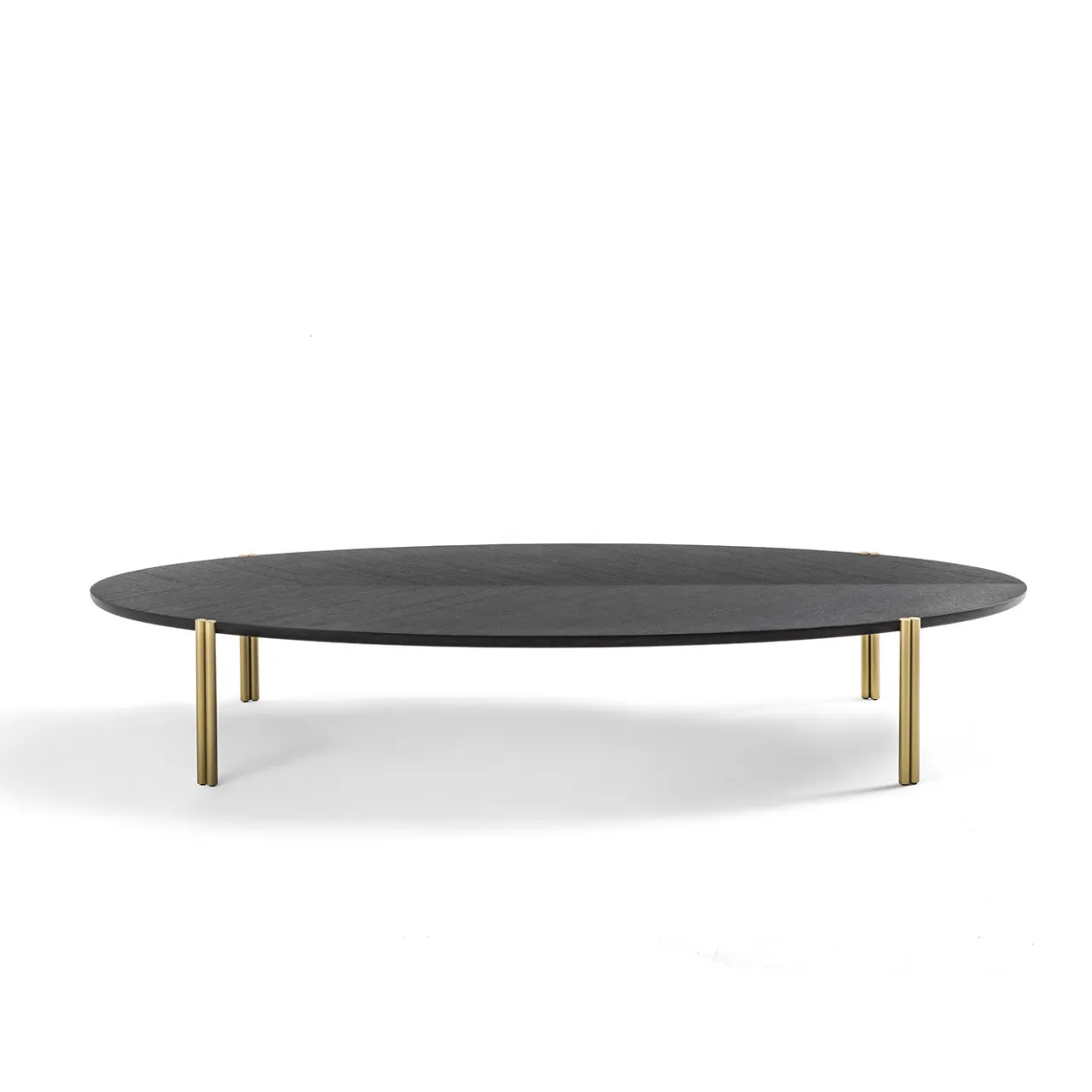 Con un design elegante e raffinato, il tavolino Jean Ordinary si adatta perfettamente a qualsiasi ambiente, sia in stile classico che moderno. Le gambe sono disponibili in ottone o in ferro laccato grigio canna di fucile, mentre il piano è in legno, disponibile in noce canaletto o frassino nero.