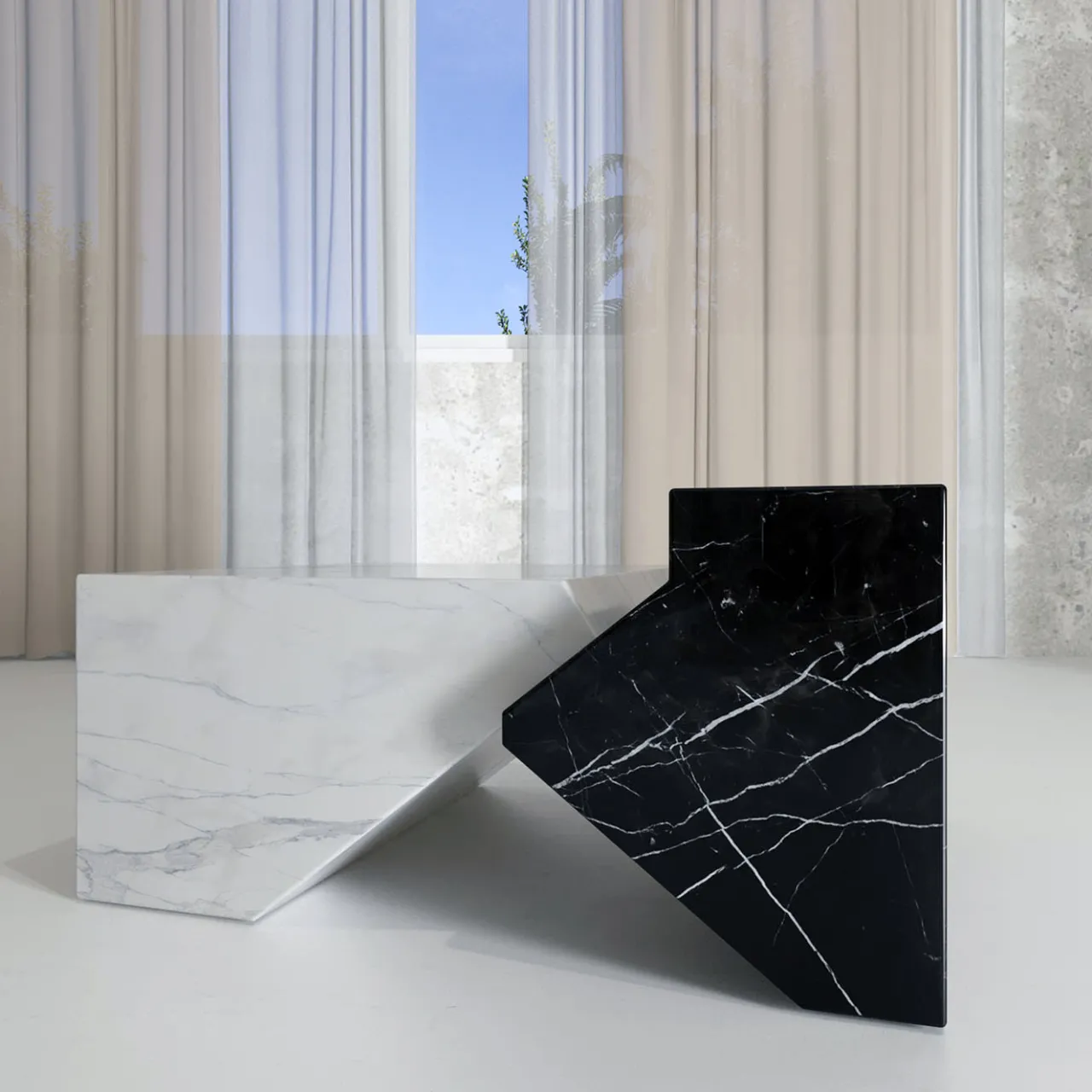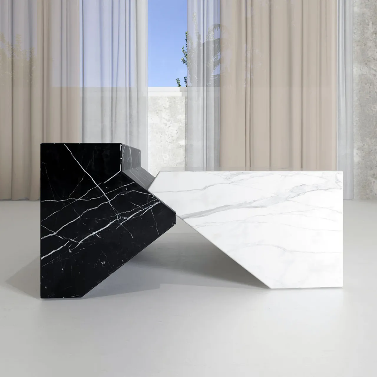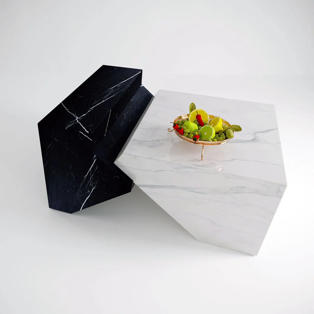 Disegnato dallo Studio Hendro Hadinata (Giacarta), il tavolino Jogja cattura immediatamente lo sguardo con i suoi volumi maestosi combinati in una silhouette scultorea. I contrasti tra texture, tagli e toni esaltano l’estetica audace, per un sofisticato omaggio all’eleganza minimalista e al design indonesiano. Realizzato combinando i pregiati marmi nero Marquinia e bianco Carrara, è disponibile anche in più varianti da esplorare con il Concierge.