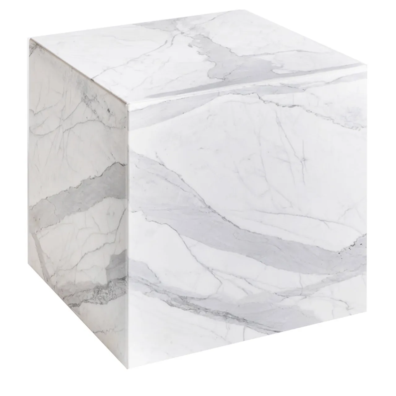 Un esercizio di minimalismo contraddistingue il carattere forte di questo tavolino contemporaneo, la cui forma perfettamente cubica è un omaggio all’eleganza dei volumi geometrici puri. Completato da una struttura in ferro a scomparsa, è caratterizzato da un’unica venatura grigia che crea il tracciato che impreziosisce spontaneamente lo sfondo bianco del suo pregiato disegno in marmo statuario di Carrara. È disponibile un’ampia gamma di personalizzazioni; per opzioni e prezzi, contattare il Concierge.