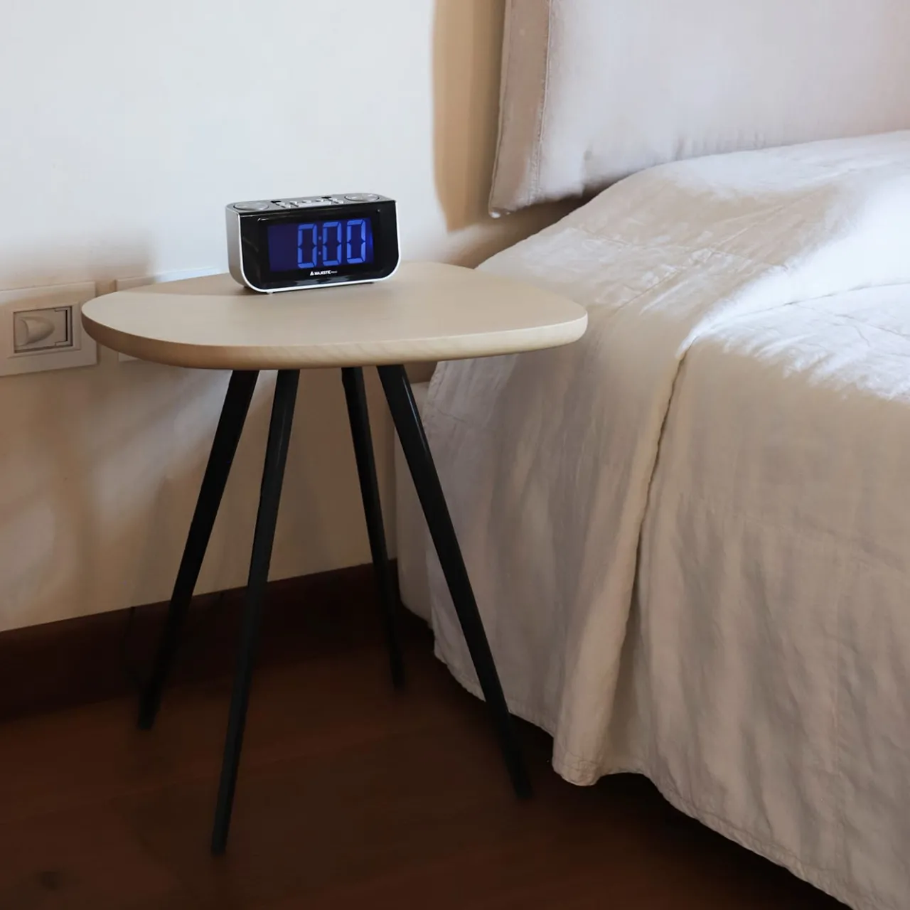 Linee fluide e proporzioni armoniose tracciano la silhouette di questo tavolino, espressione raffinata di una sofisticata contemporaneità. Quattro sottili gambe in metallo laccato nero garantiscono il sostegno del piano, realizzato in frassino naturale e caratterizzato da venature imprevedibili e irripetibili. Sintesi di semplicità e praticità, si inserisce con coerenza in diversi spazi moderni.