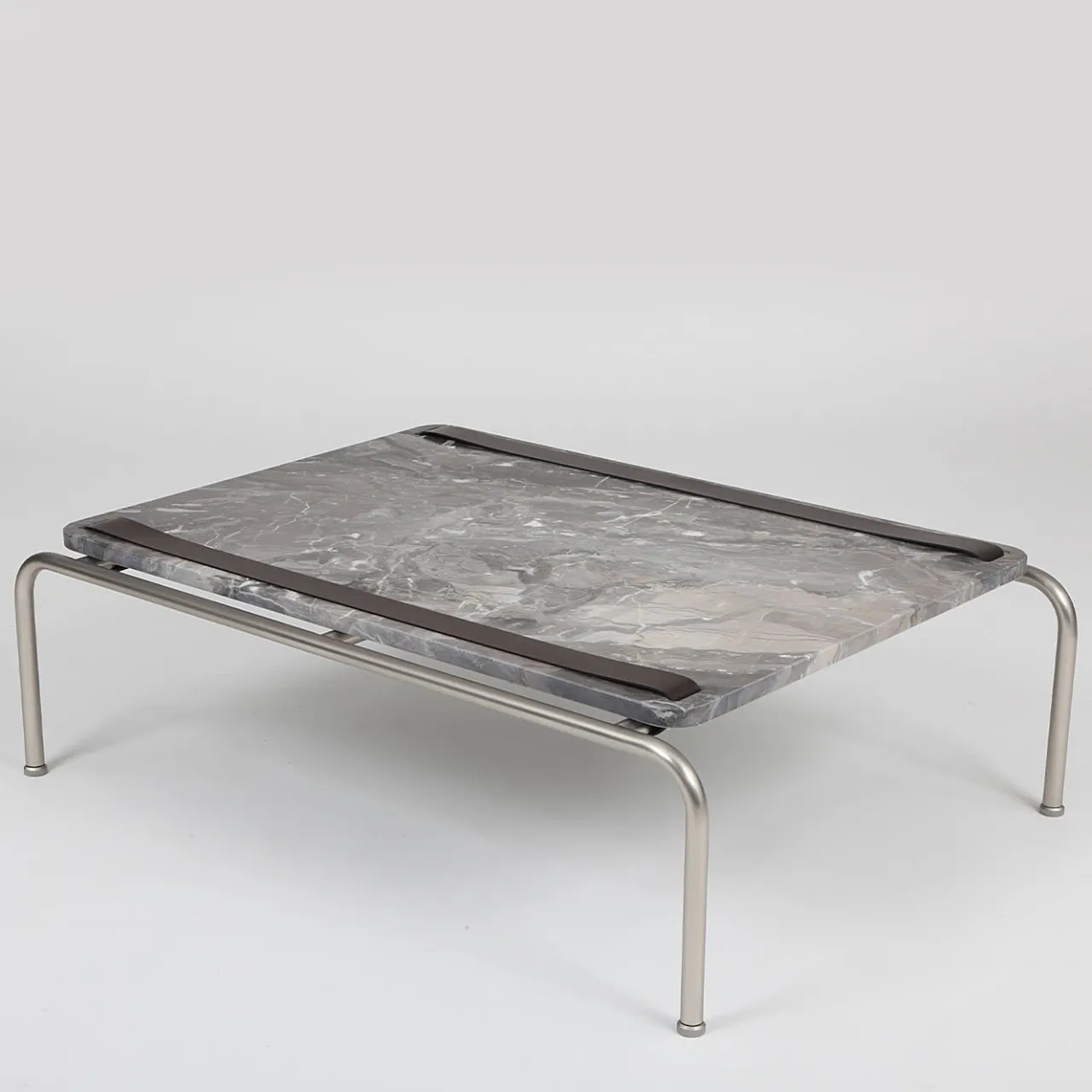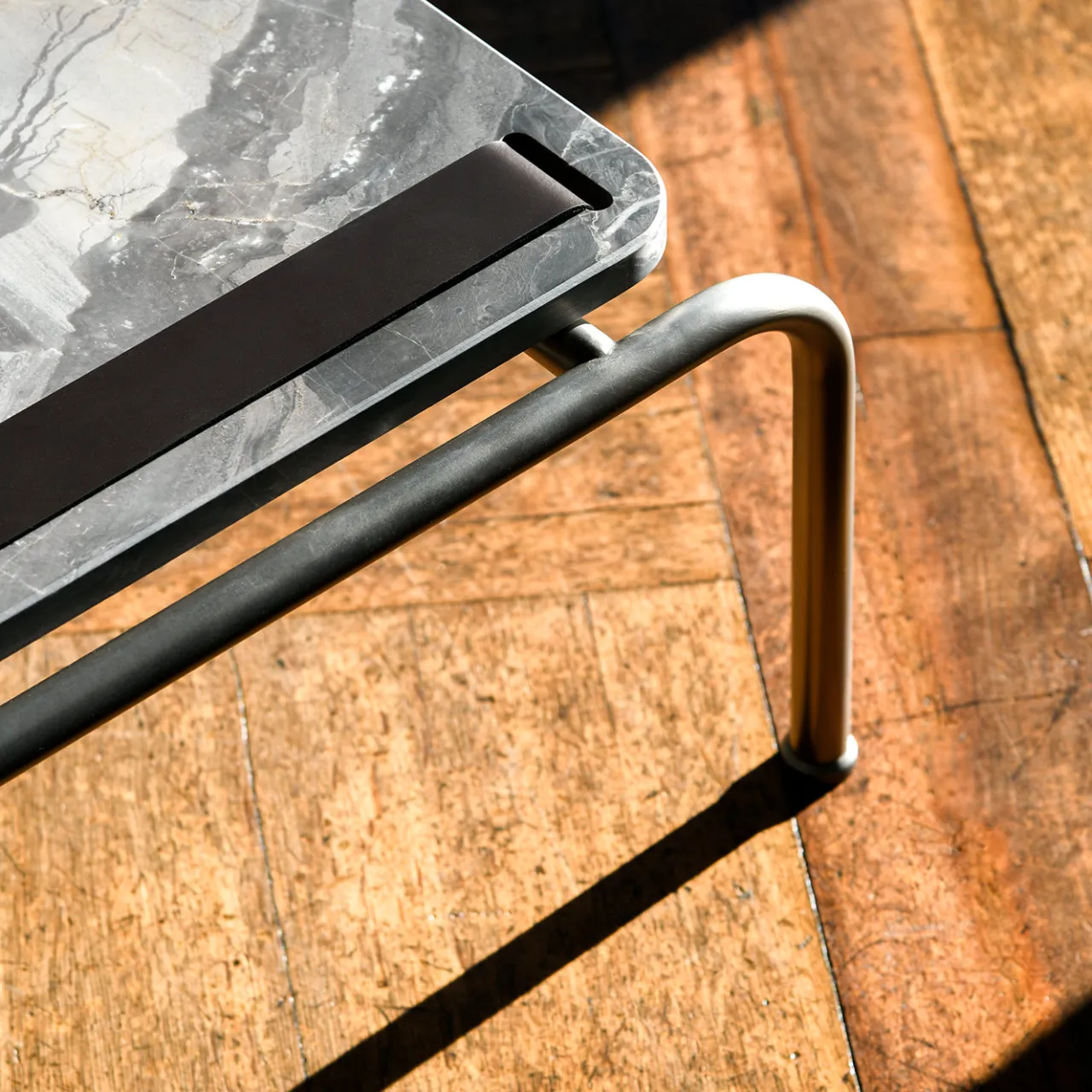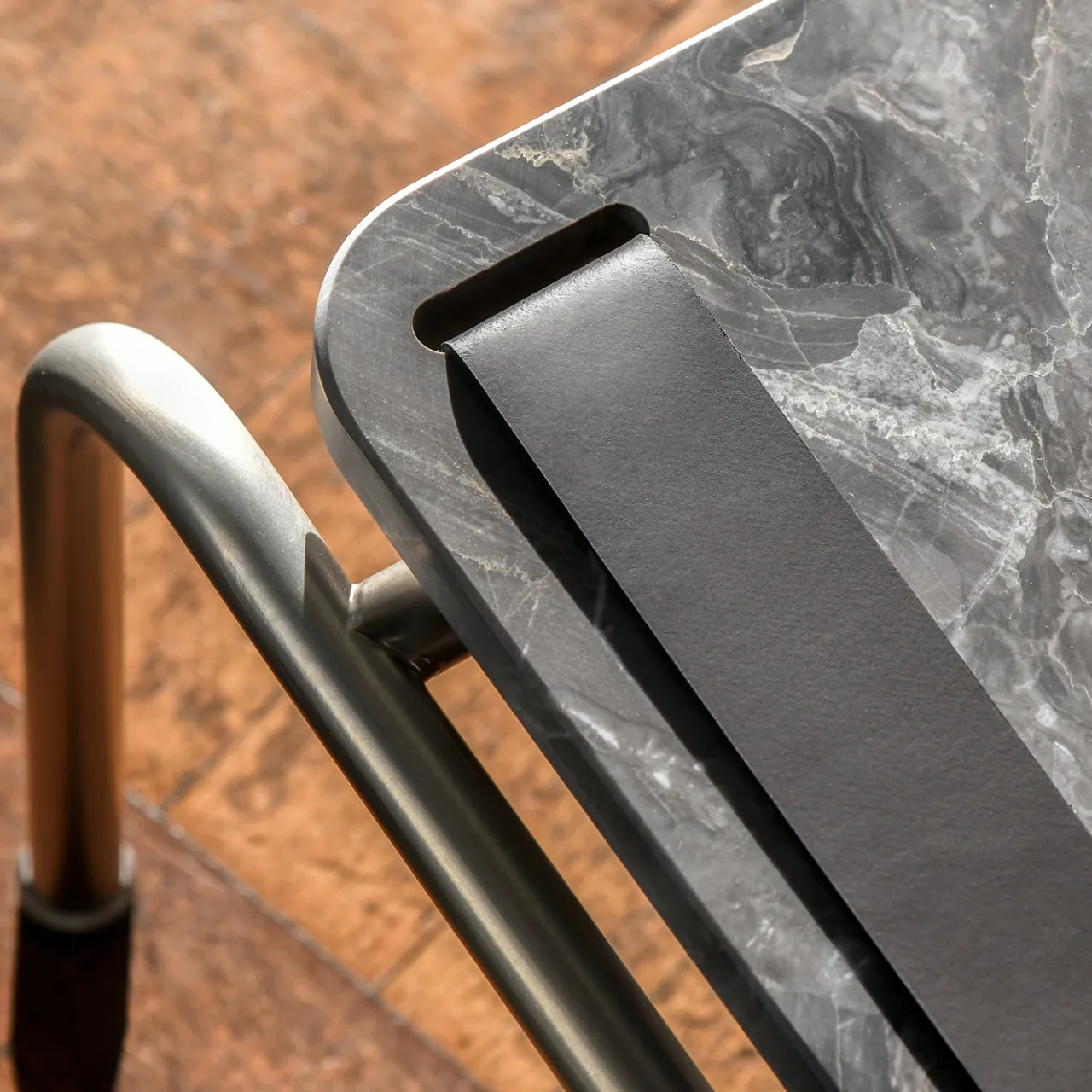 Reso con spettacolare armonia ed eleganza, questo tavolino combina materiali morbidi e duri, contrastando in tonalità e texture per rivelare un prodotto finale sofisticato. Poggiato su un’elegante base in metallo cromato, presenta un piano in marmo arricchito da due cinture in pelle. Questo pezzo è personalizzabile nelle dimensioni e nelle finiture, si prega di consultare il Concierge per ulteriori informazioni.