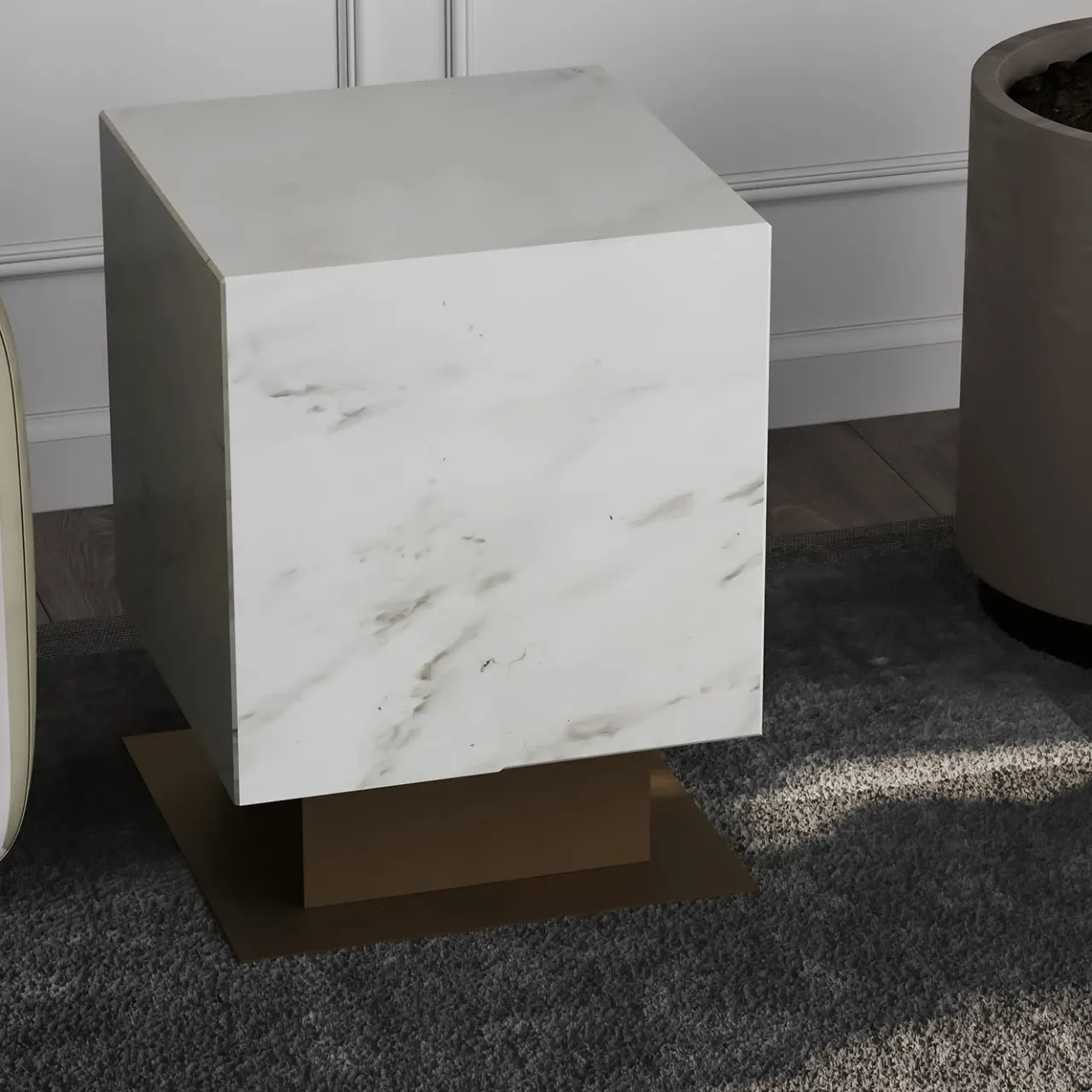 Il tavolino Cubical, disegnato da Paolo Ciacci, è definito dalla sua forma scultorea. Presenta una base in metallo e una struttura centrale in metallo che sostiene il piano in marmo Calacatta Luxury. La struttura metallica è rifinita in bronzo ombra, aggiungendo un tocco sofisticato. Disponibile in diverse finiture di marmo e metallo, è completamente personalizzabile. Per ulteriori informazioni, contattare il Concierge.