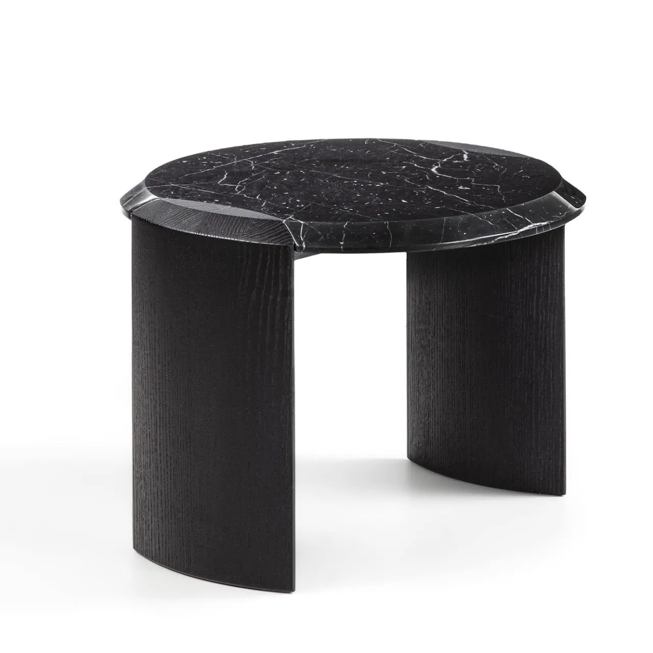 Dal nome di una poetica cittadina lacustre del Nord Italia, questo tavolino cattura lo sguardo con i suoi volumi slanciati e dinamici proposti in profonde sfumature cromatiche. Un particolare ed elegante incastro tra il pregiato piano in marmo di Marquinia e le gambe in frassino tagliato a mandorla caratterizza il design, che appartiene a una serie che conta più varianti affascinanti.