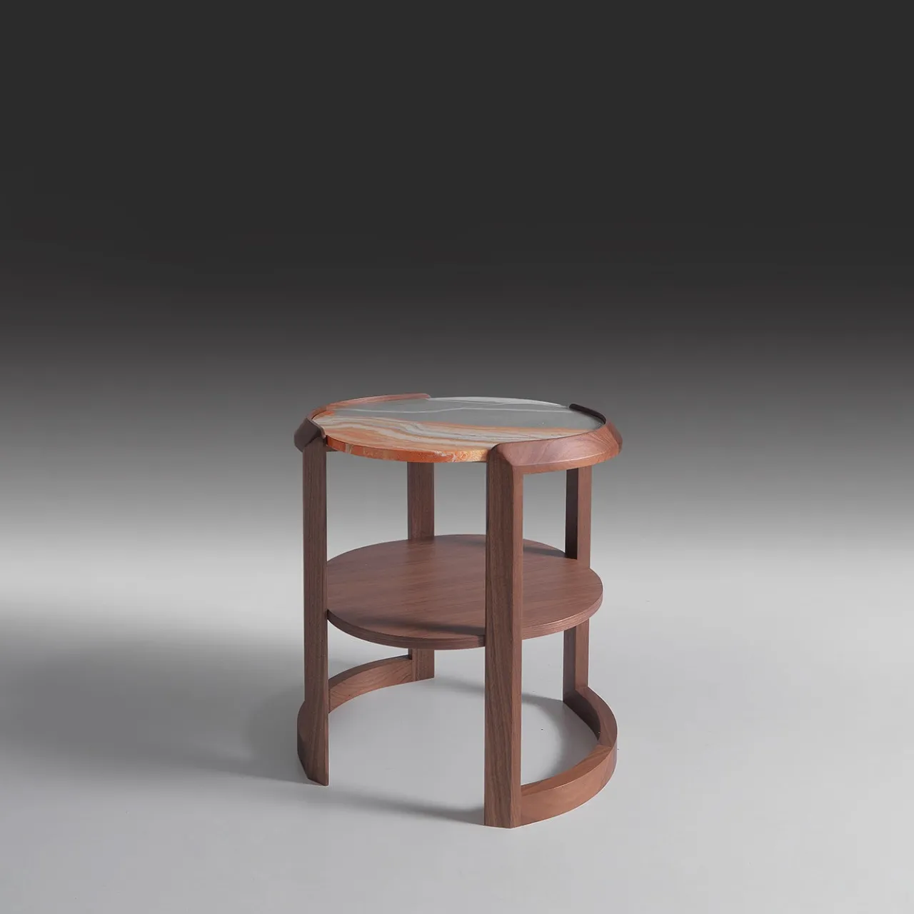 Stupendo design di sofisticato valore geometrico, questo tavolino sarà un complemento originale e accattivante per una zona giorno in stile contemporaneo. Dalle linee eleganti e arrotondate, è realizzato artigianalmente in noce canaletto, con un piano rotondo in marmo Rainbow di prima qualità. Personalizzabile su richiesta, contattare il Concierge per ulteriori dettagli ed eventuali variazioni di prezzo.