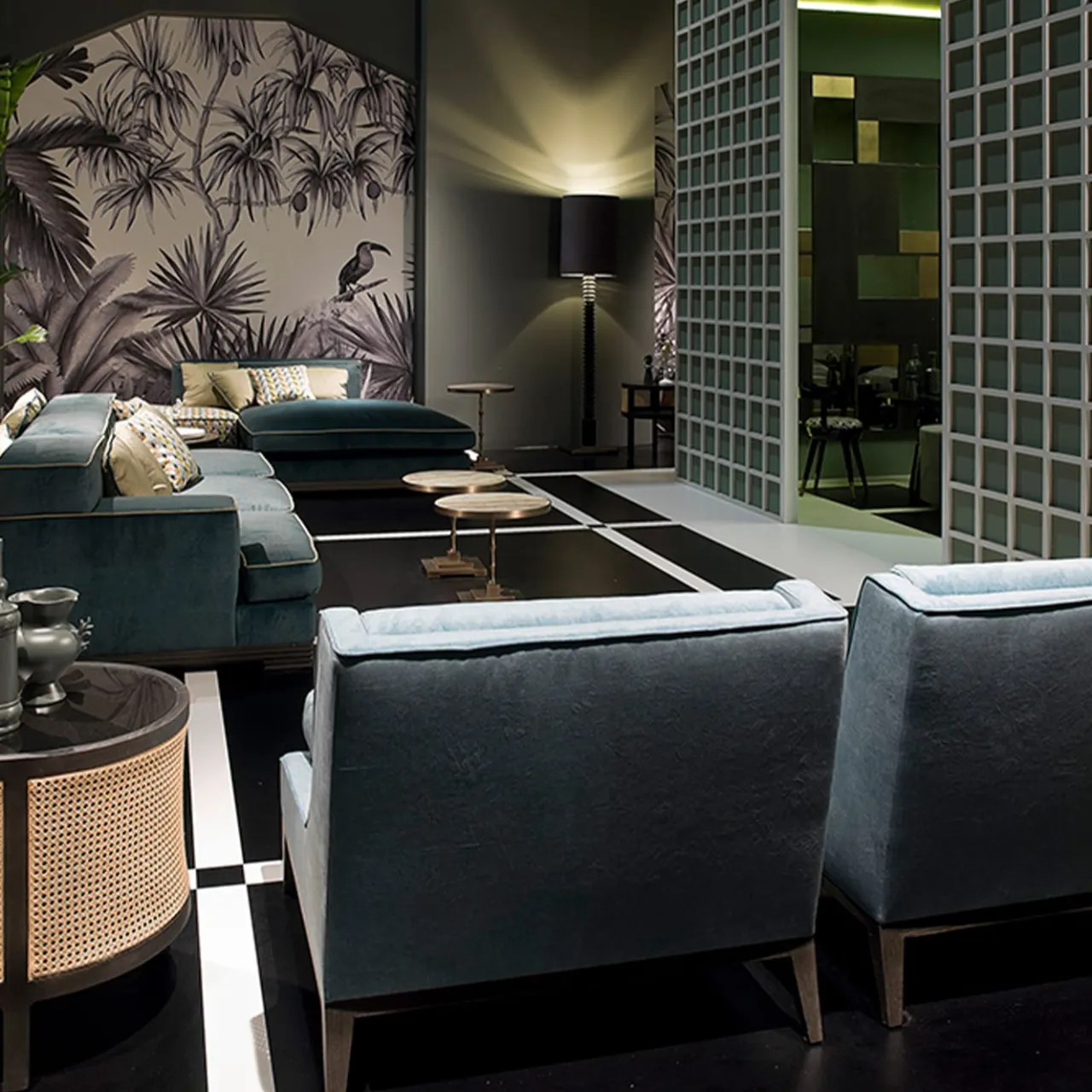 I tavoli rotondi Sacher disegnati da Leonardo Dainelli sono caratterizzati da due elementi, il legno e la paglia viennese, che richiamano in chiave ironica i due strati che compongono la famosa torta viennese. La struttura è parzialmente avvolta dalla paglia viennese, creando un mezzo cilindro che crea all’interno un affascinante effetto peekaboo. Nella versione a più ripiani, all’interno del cilindro è stato inserito anche un ripiano in vetro, sospeso grazie a una struttura metallica tubolare in ottone brunito.