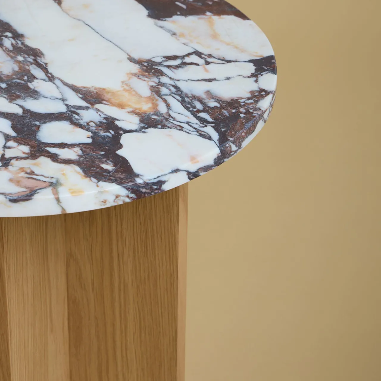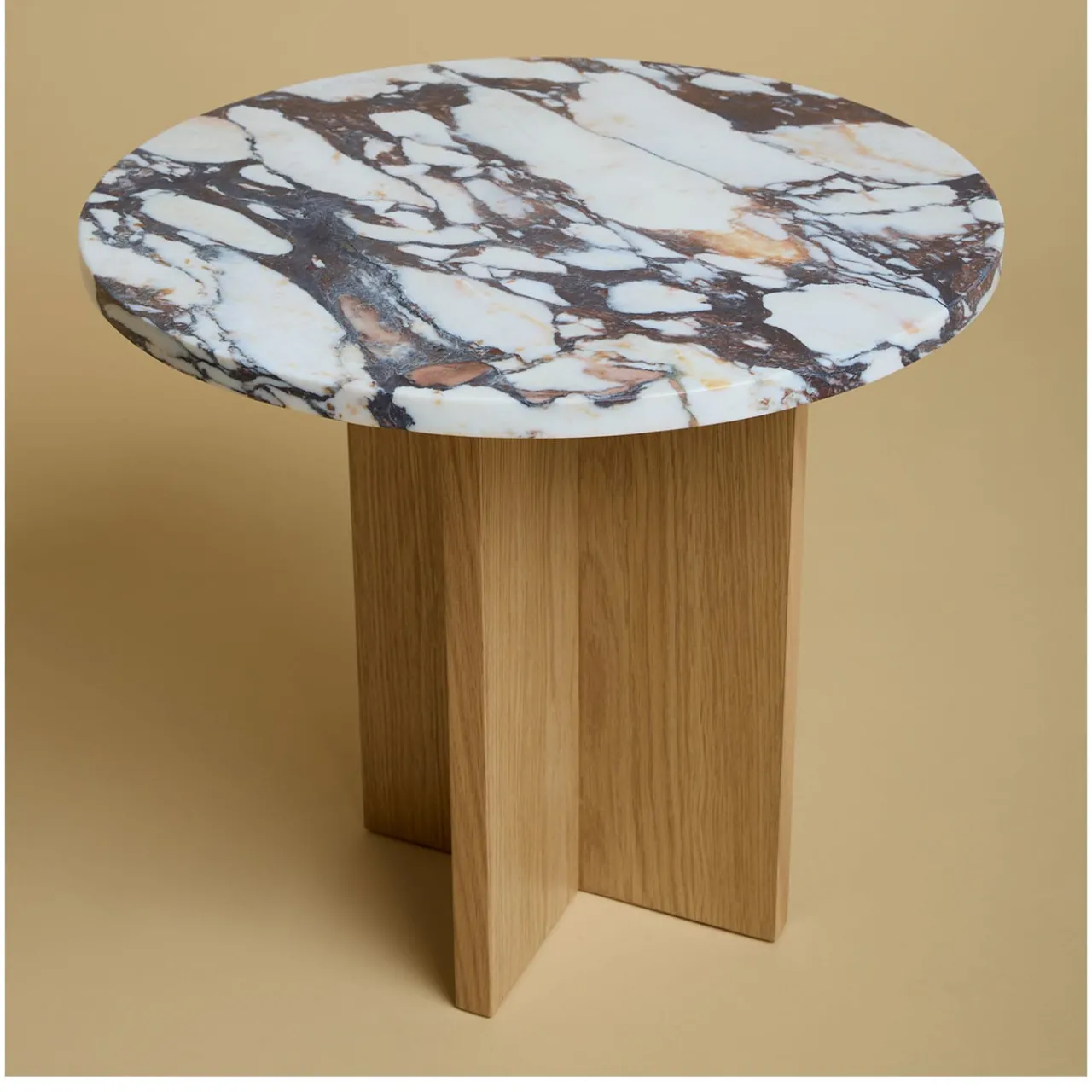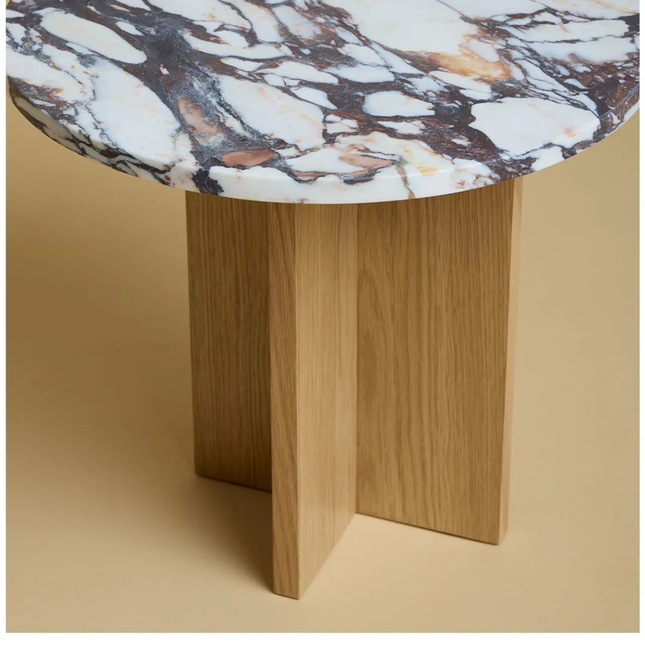 Squisita combinazione di artigianalità e raffinatezza, questo tavolino della Collezione Sherman armonizza un sorprendente piano in Calacatta viola con una base in legno di rovere, meticolosamente assemblata incollando assi perpendicolari. Rifinito a mano per esaltare l’estetica naturale del marmo e del legno, sono disponibili altre varianti nel catalogo Artemest.
