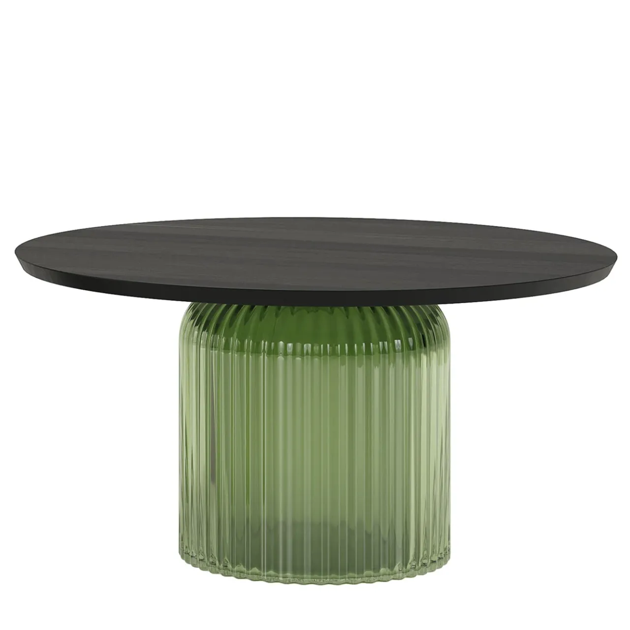 Soffio è un elegante tavolino in vetro veneziano soffiato a bocca, caratterizzato da un raffinato effetto di superficie plissettata in verde oliva. Impreziosito da un piano rotondo con bordi smussati, rifinito in frassino nero, unisce la maestria artigianale alla raffinatezza contemporanea, aggiungendo un tocco di eleganza senza tempo a qualsiasi spazio.