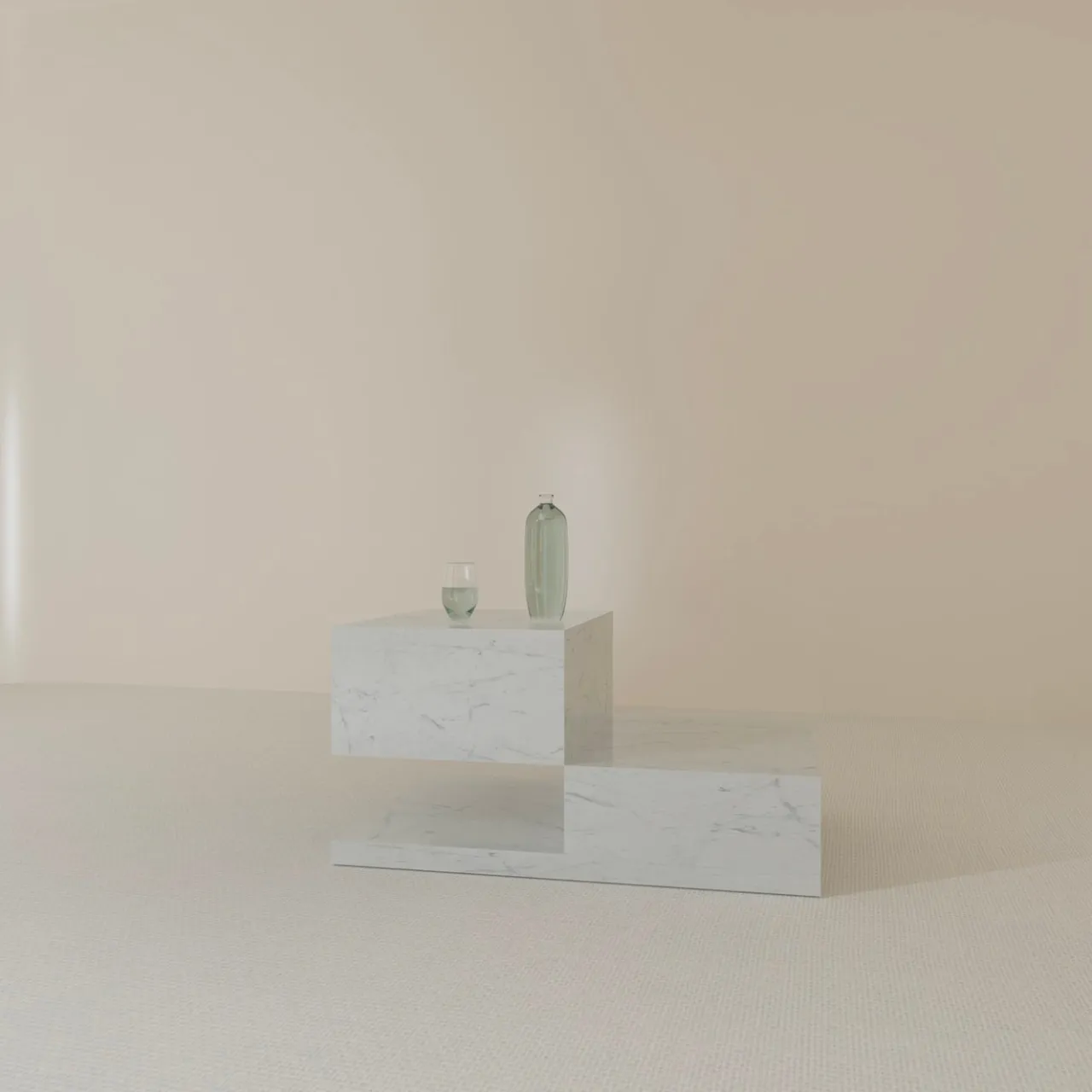 Chiamato in modo giocoso per contrastare la sua ingannevole instabilità, questo tavolino deve il suo fascino scultoreo a una sapiente disposizione di volumi geometrici puri. La composizione risultante trova dinamismo nella sua estetica asimmetrica e lusso nella sua struttura in marmo di Carrara. La controparte in marmo di Visone è disponibile anche nel catalogo Artemest.