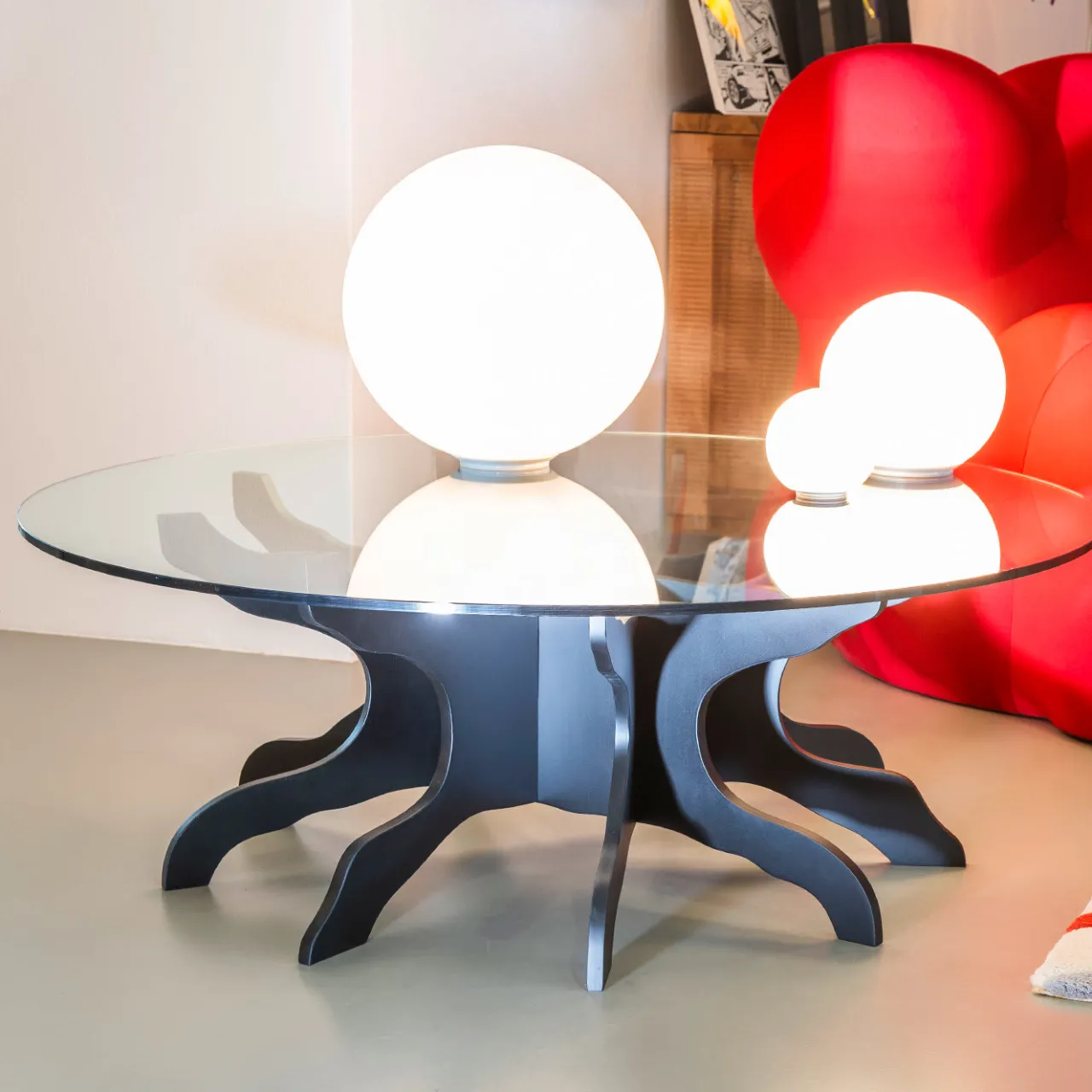 Tavolino rotondo dal design moderno e raffinato. L’originale base è una vera e propria scultura, realizzata in multistrato di betulla stampato e verniciato in nero opaco. L’elegante piano rotondo, del diametro di 100 cm, è in vetro temperato extrachiaro. Il tavolo Tale è disponibile anche con piano quadrato e con base in betulla naturale.