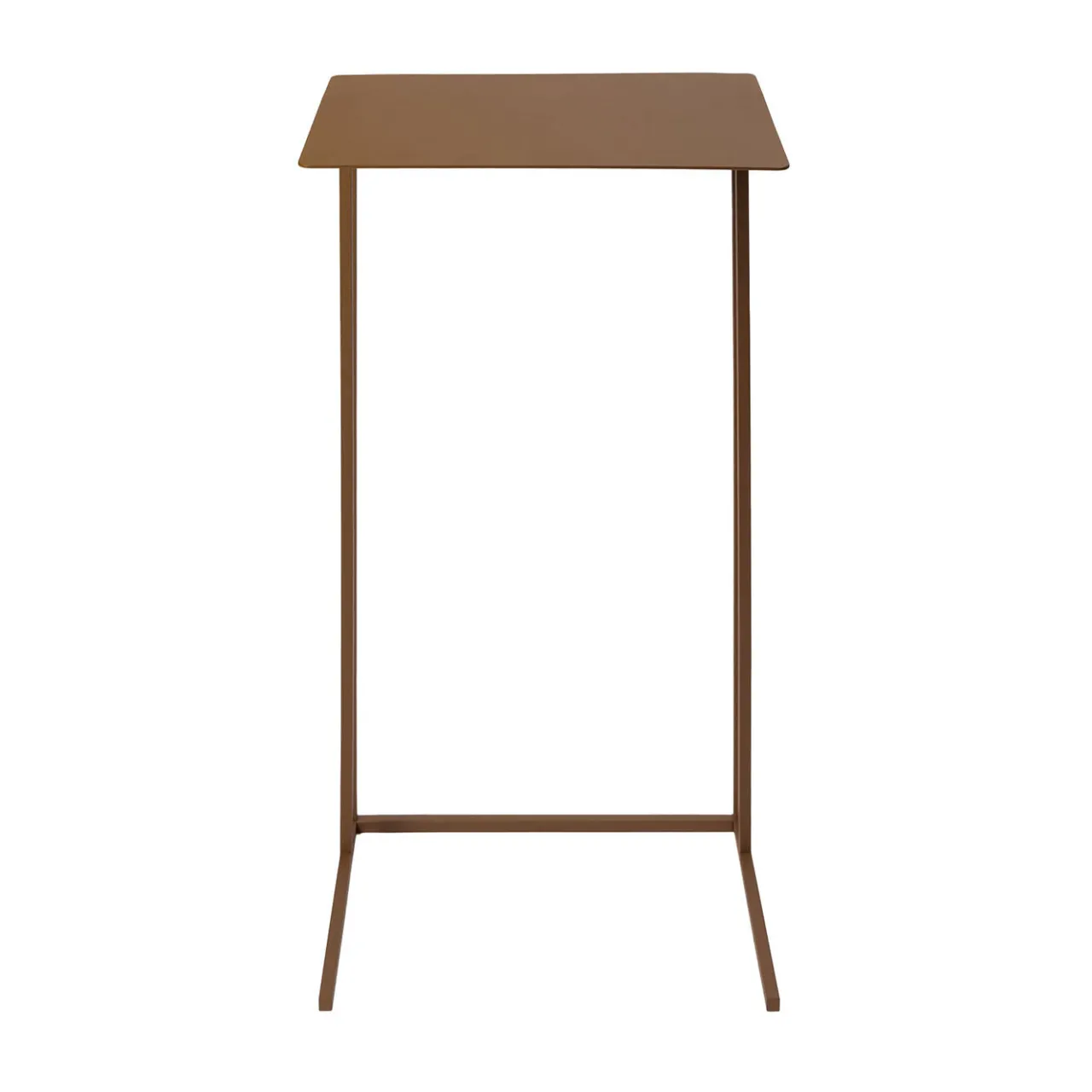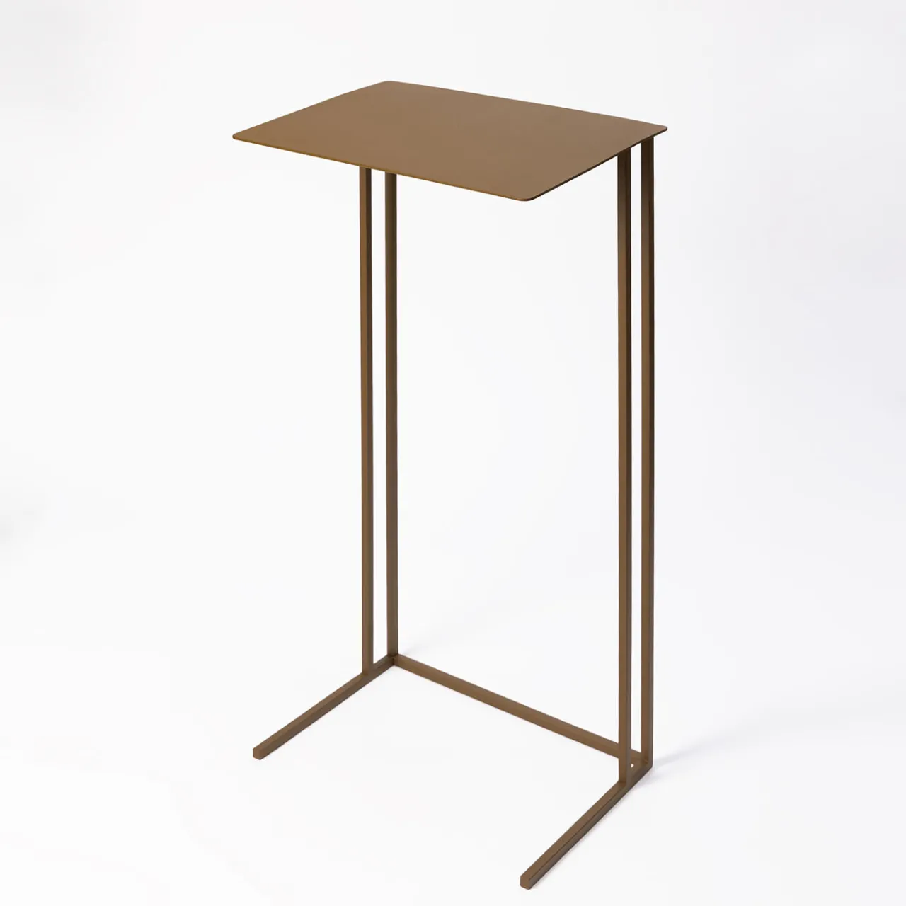 Il tavolino Thabit in acciaio combina solidità ed eleganza con un design che enfatizza la durabilità e la permanenza. La sua base stilizzata a forma di C e i quattro supporti verticali agli angoli creano una forma geometrica precisa. A differenza del suo omologo, mantiene un sottile spazio quando accostato al divano, trasformando funzione in gesto estetico. Il piano rettangolare con bordi arrotondati offre la superficie perfetta per appoggiare un laptop, un libro o una tazza. Progettato da Svetlana Golubeva.