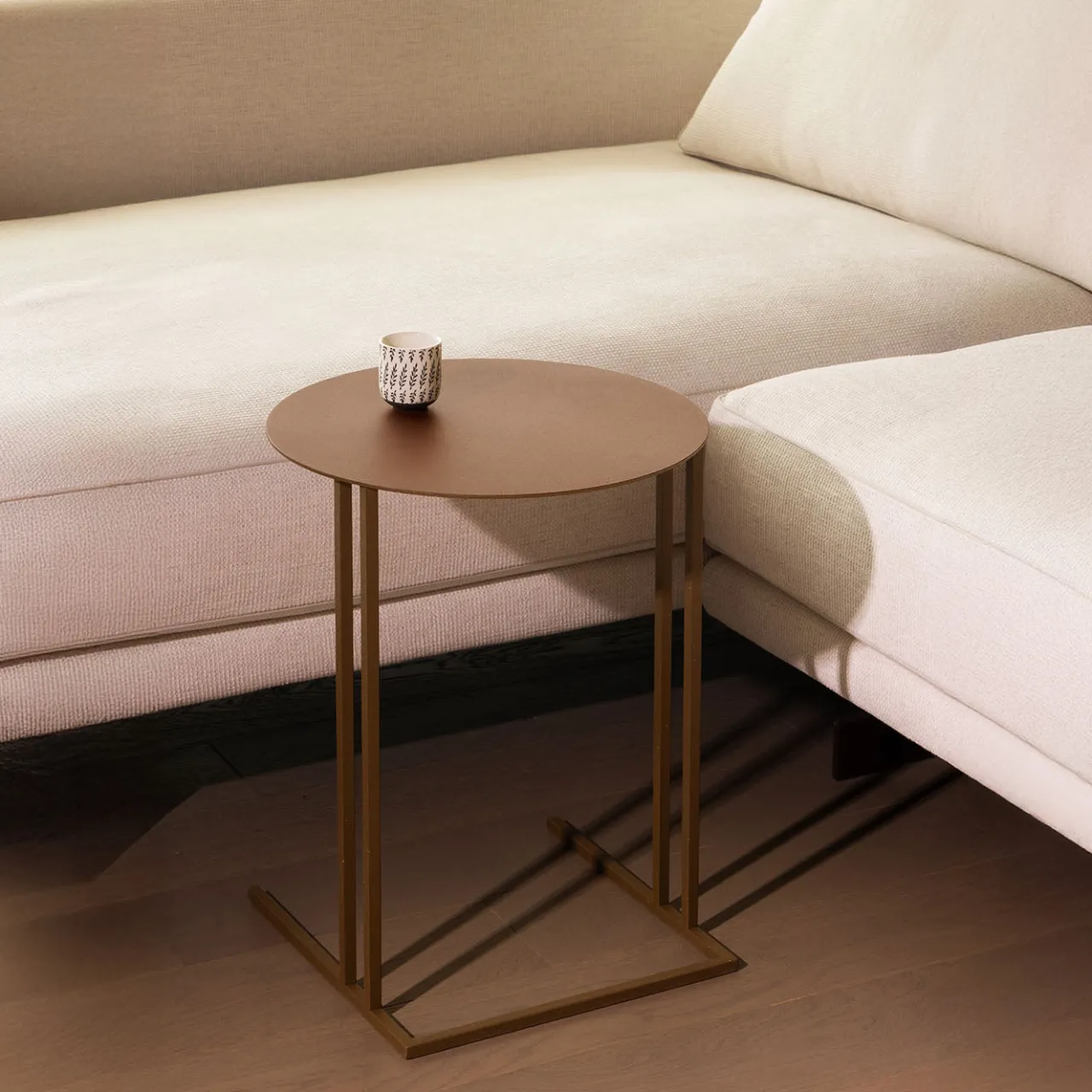 Il tavolino rotondo Thabit presenta una base a forma di “C” con quattro supporti verticali posizionati agli angoli, creando un sottile spazio visivo tra il tavolo e i mobili adiacenti. Il suo piano circolare fornisce un morbido contrasto con la base lineare, promuovendo un utilizzo rilassato e intuitivo. Ideale per un angolo lettura o un drink serale, questo pezzo bilancia la formalità con un’eleganza informale e invitante. Progettato da Svetlana Golubeva.