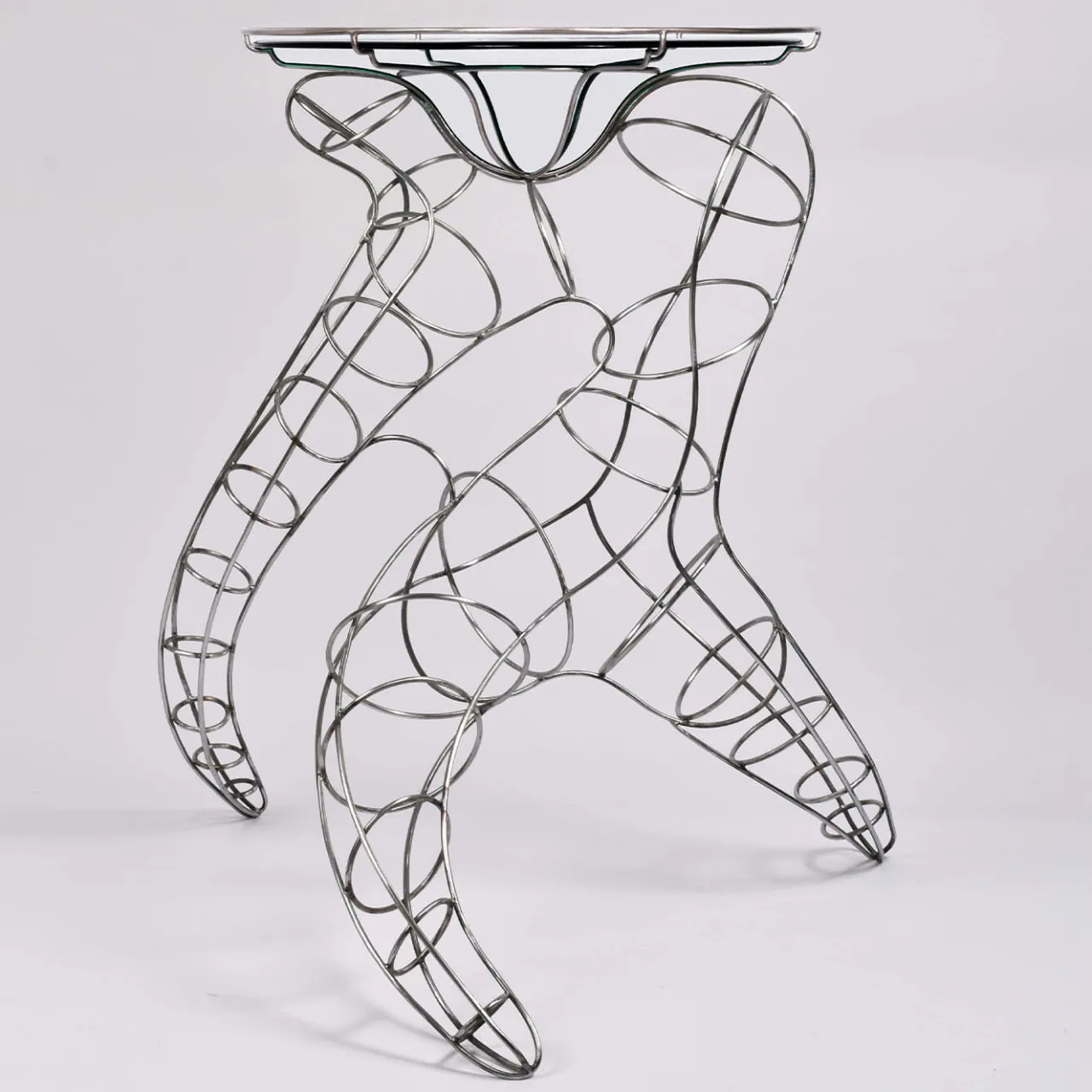 Mr. Joe è un tavolo alto le cui forme riecheggiano i movimenti e le sembianze del corpo umano. Un mobile la cui funzione non è solo quella di servire, ma di entrare in relazione con lo spazio e generare una presenza reale e dinamica. Il vetro fuso verde intenso ha una texture perfettamente liscia da un lato e una texture a buccia d’arancia dall’altro, che ne sottolinea la natura vibrante e dinamica. Il colore del vetro è personalizzabile. Possono verificarsi lievi variazioni dovute a un processo di produzione artigianale.
