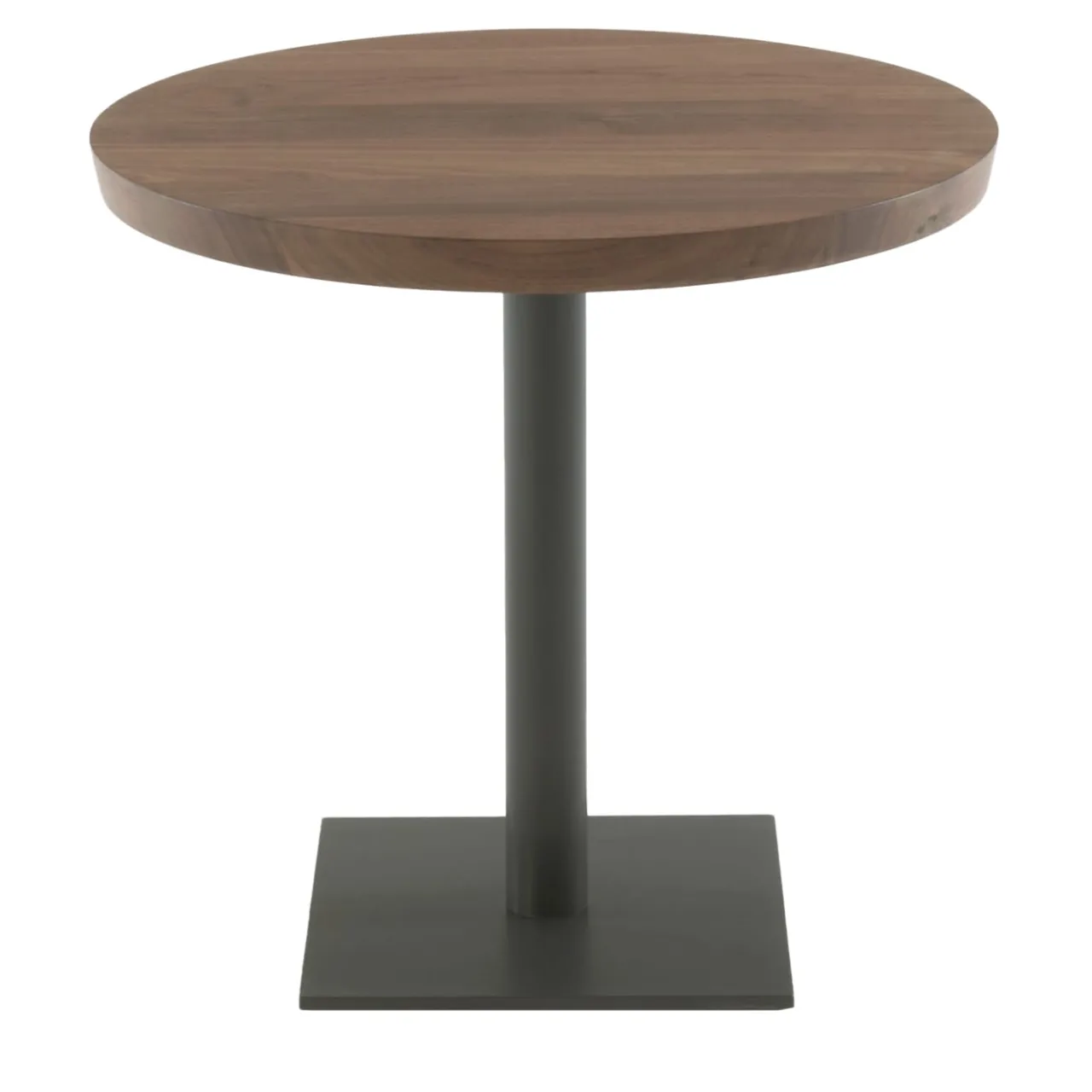 Ideale per completare un bar o un angolo di uno studio privato, questo tavolo rotondo di Terry Dwan è un esercizio di contrasto armonioso. La base quadrata, da cui deriva l’elemento del piedistallo, si scontra armoniosamente con il piano circolare in noce rifinito a olio, le cui venature uniche contrastano con la struttura in ferro laccato grigio antracite perfettamente uniforme.