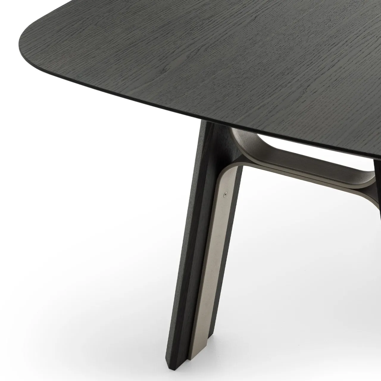 Il rovere Laguna, che colpisce per la sua tonalità profonda e la ricchezza delle venature, è stato scelto come impiallacciatura esclusiva per la struttura leggera in MDF di questo tavolo. Travi metalliche curve, verniciate con polveri epossidiche color champagne, rinforzano le audaci gambe, che sostengono efficacemente il piano sagomato, caratterizzato da un caratteristico profilo smussato a 60°. Ispirato a un ponte dalle linee fluide, il tavolo è disponibile in diverse versioni, consultabili nel catalogo Artemest.