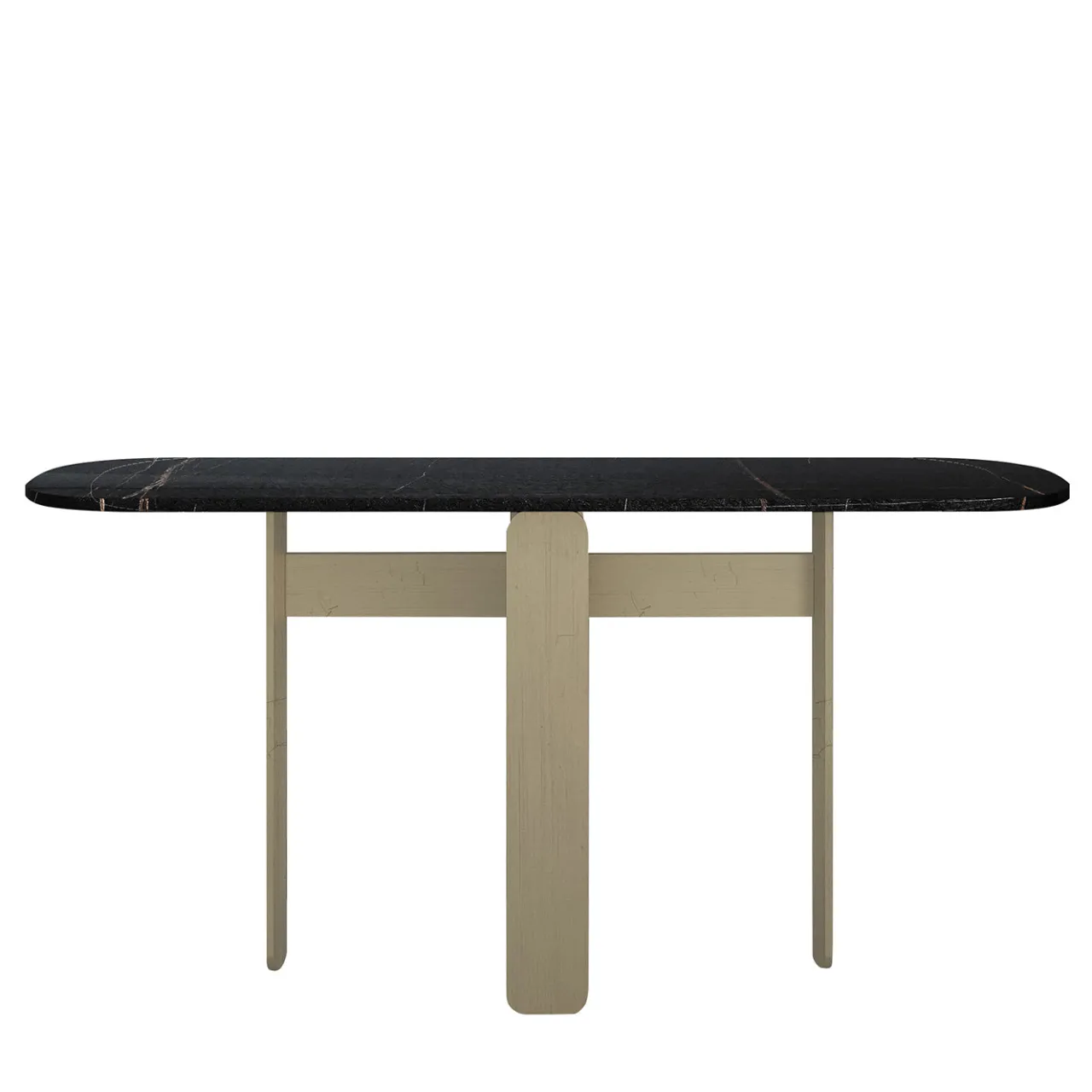 Questa elegante console presenta un piano allungato in marmo Sahara Noir, caratterizzato da ricche tonalità terrose e venature naturali che rendono ogni pezzo unico. La superficie levigata e lucida emana un’eleganza senza tempo, mentre la base in metallo con finitura Winter Gold si distingue per le sue linee architettoniche pulite. Quattro gambe sottili, collegate da una barra trasversale minimalista, conferiscono alla struttura una presenza leggera ma solida. Disegnata da Paolo Ciacci, questa console combina armoniosamente pietra naturale e metallo raffinato, ideale per arricchire ingressi, corridoi o zone living con un tocco di moderna eleganza.