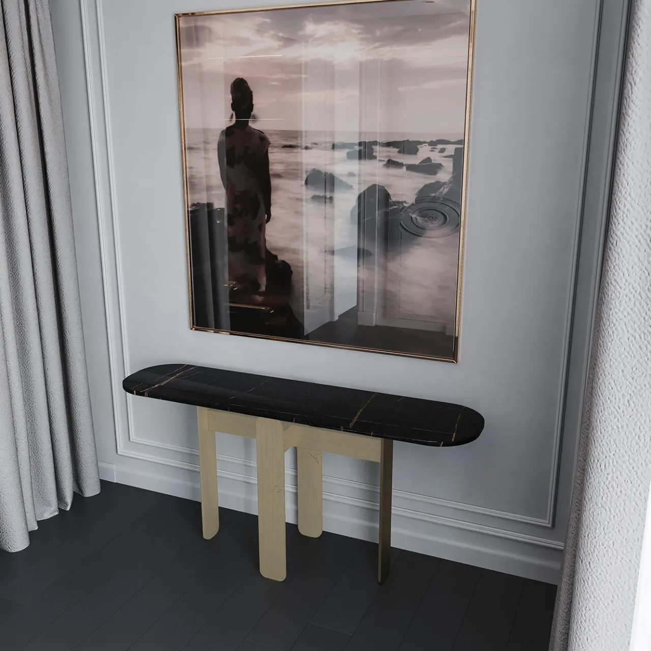 Tavolo Console Tumba in Marmo Nero con struttura in metallo oro*L’Eccesso Outlet