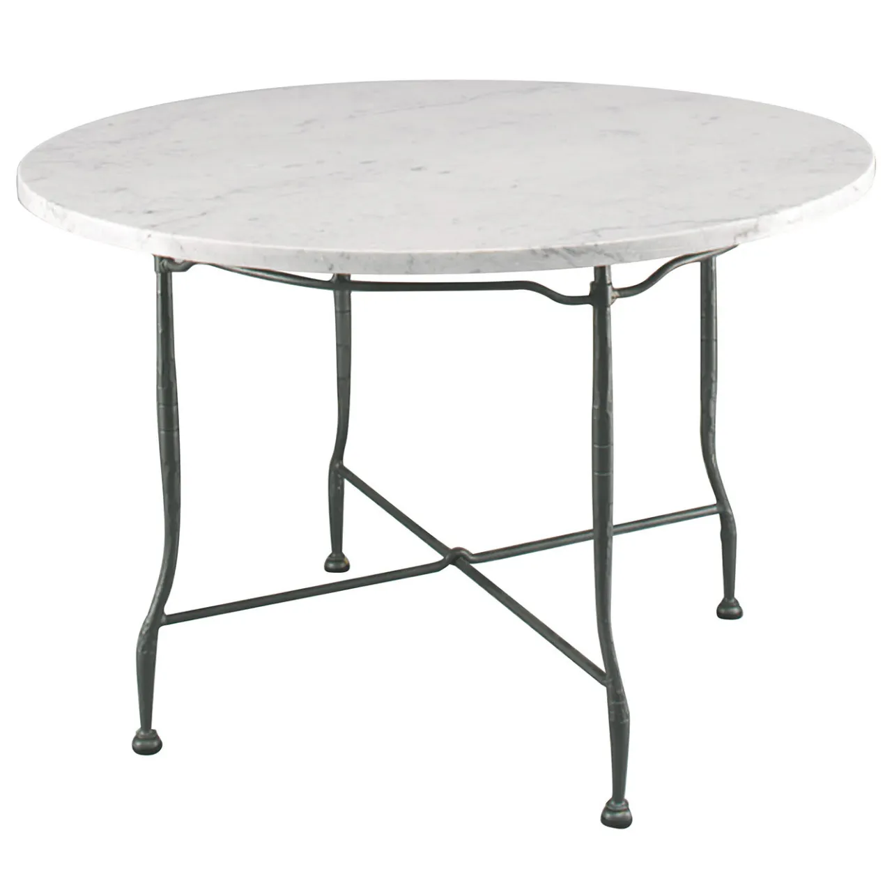 Officina Ciani unisce la qualità rustica del ferro forgiato a mano con l’eleganza moderna del marmo di Carrara per creare un tavolo che si senta a casa ovunque sia collocato. Versatile e di grande effetto per qualsiasi patio, terrazza e veranda, le sinuose gambe “ondulate” impreziosite da ghiere sferiche sono il tratto distintivo della collezione Intreccio. Il trattamento allo zinco e la verniciatura a polvere garantiscono resistenza e durata nel tempo.