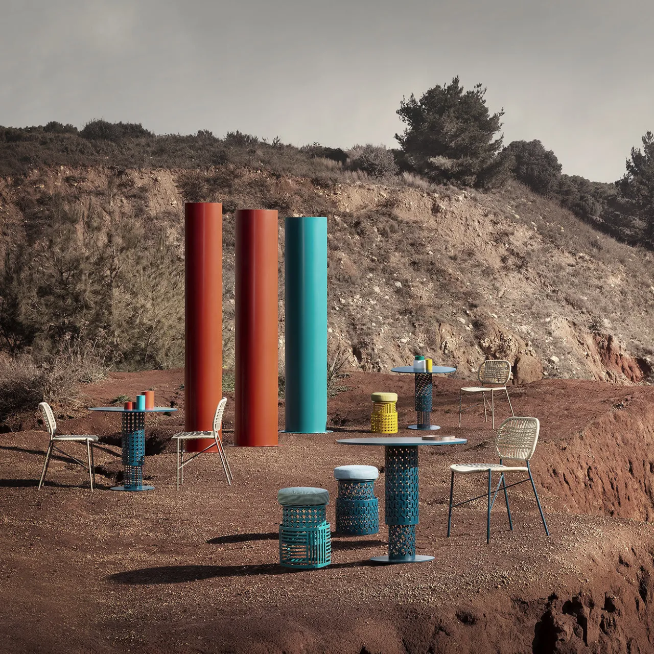 Superba dimostrazione di maestria artigianale, questo tavolo vanta esclusivi accenti decorativi tagliati al laser che esaltano i due pezzi cilindrici che compongono la struttura della base. Interamente realizzato in acciaio laccato blu oceano, è composto da una silhouette simmetrica con piano rotondo, base e due supporti cilindrici nel mezzo. Questo pezzo è personalizzabile in un’ampia gamma di colori; chiedete al Concierge per le opzioni.