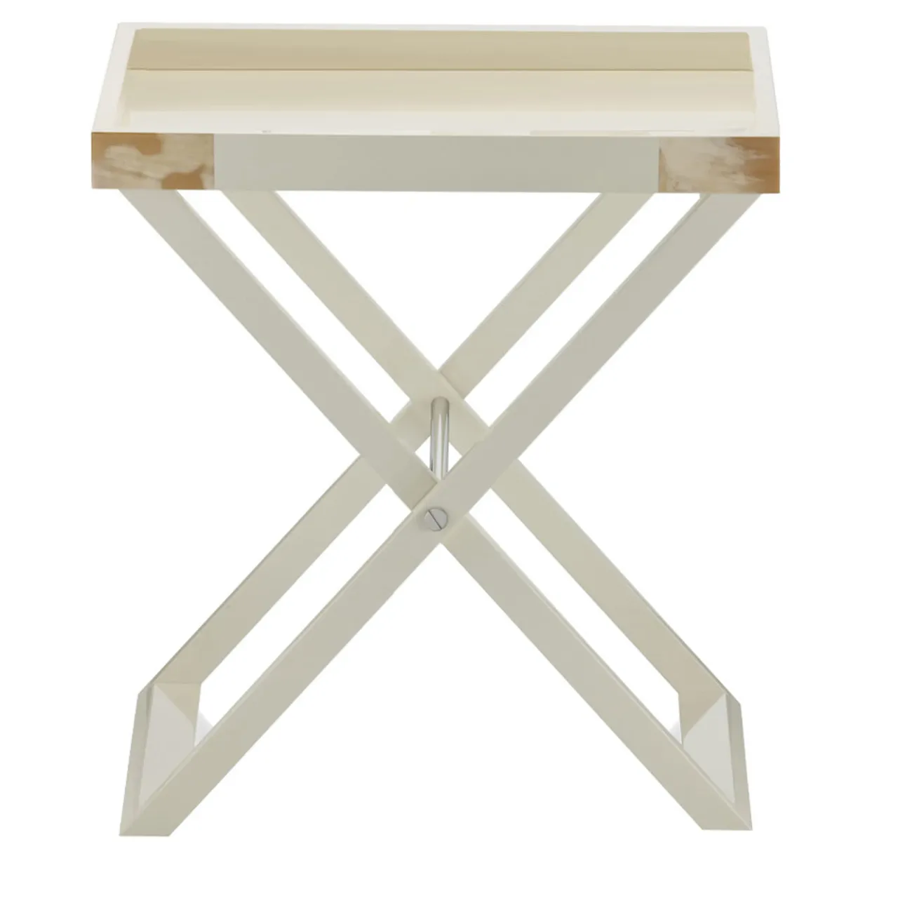 Il tavolo Elba ha dimensioni cm 70 x 46 x H 77, ma essendo un pliant può essere riposto ovunque. Questo piccolo ma utile tavolo da portata ha un vassoio in corno e la struttura è in legno laccato avorio lucido e acciaio. Posizionatelo dove volete e godetevi la sua utilità.